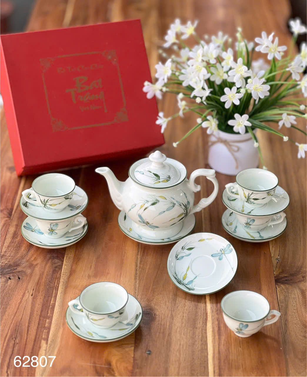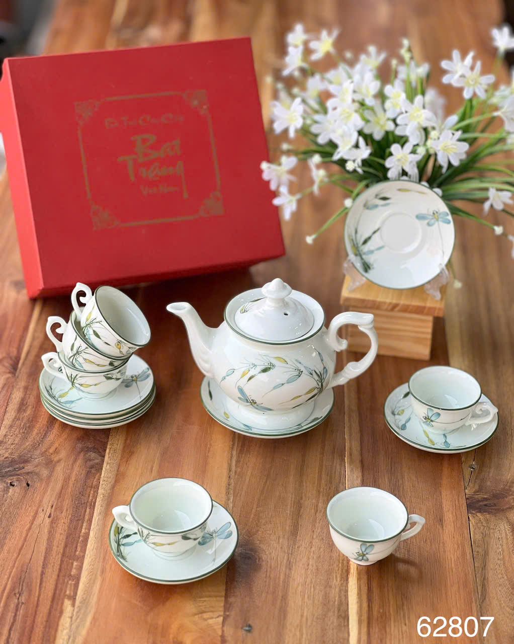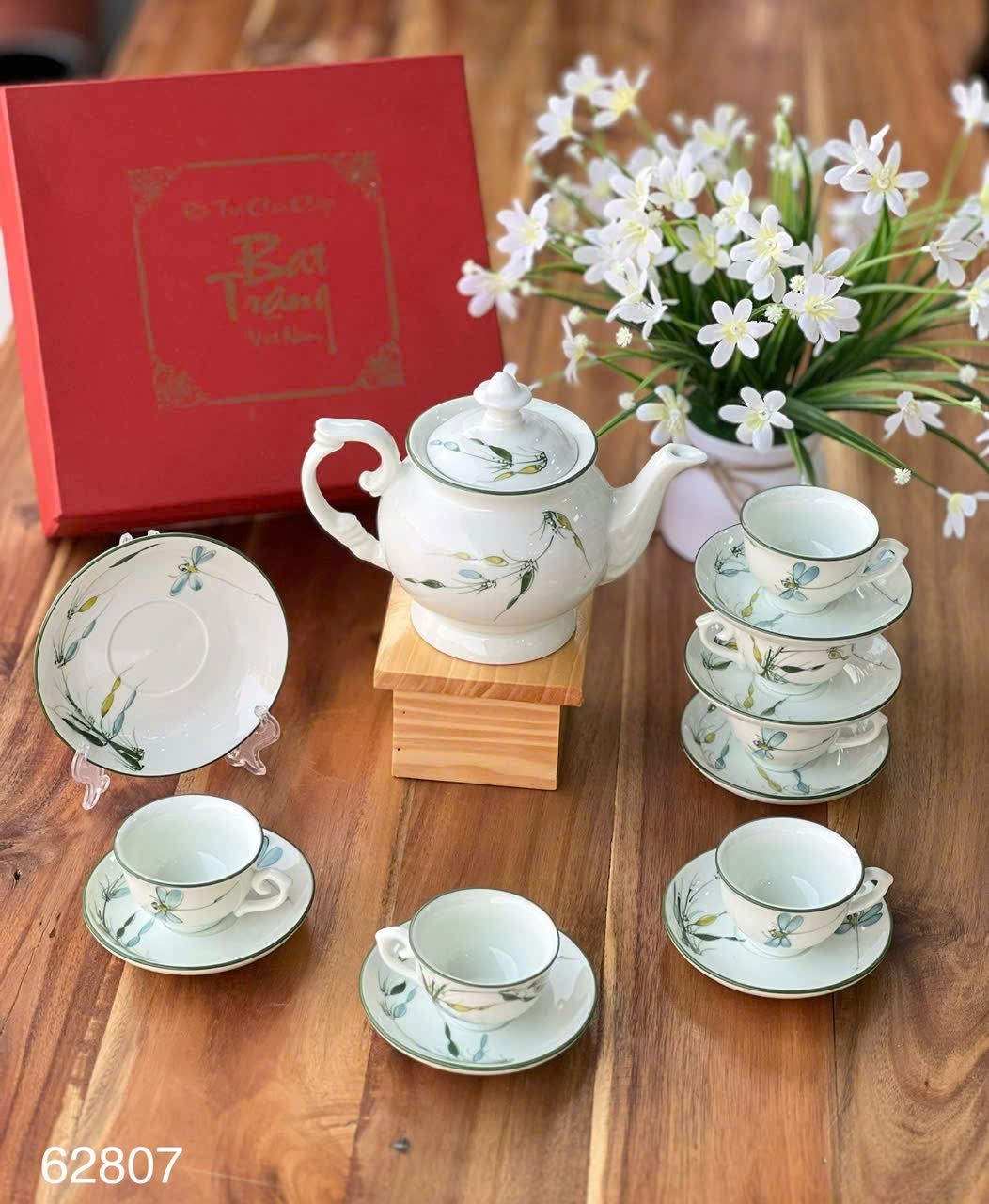 ẤM CHÉN ĐÀI CÁC TRÚC CHUỒN MEN KEM Dung tích: 450ml Chất liệu: Hàng vẽ tay, men khử