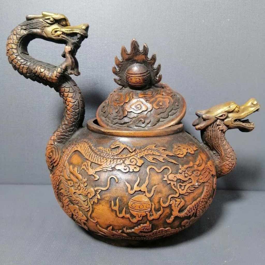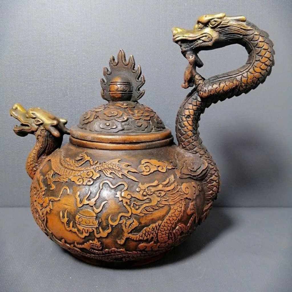 Ấm Rồng Đồng Chạm Khắc Thủ Công – Ấm Trà Phong Thủy Tượng Trưng Quyền Lực & Tài Lộc