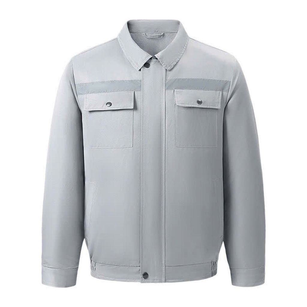 Chất liệu vải dù cao cấp mang lại khả năng chống nắng tốt, siêu nhẹ và nhanh khô, rất thoáng mát khi mặc. Thiết kế dài tay hỗ trợ chống nắng tối đa, đồng thời được trang bị các dải phản quang giúp tăng độ an toàn khi làm việc ban đêm. Áo có sẵn hai lỗ tròn gọn gàng ở hai bên thân – nơi lắp quạt mini 5V để hút khí nóng, thổi khí mát liên tục, mang lại cảm giác dễ chịu suốt ngày dài.