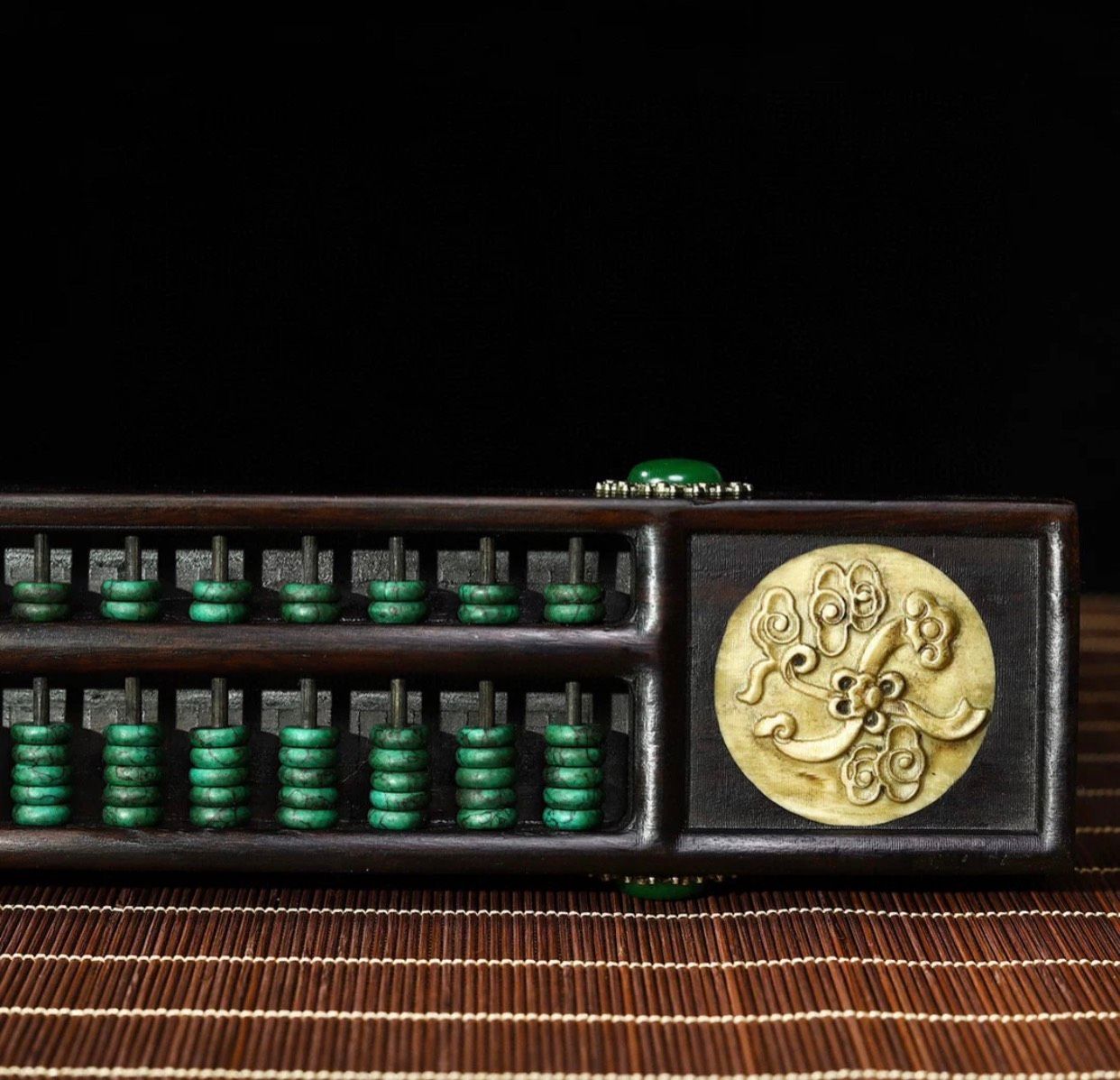 Bàn tính cổ khảm đá quý trang trí Chất liệu gỗ Sử dụng đồ trưng bày Kt 38*5.5*2.7cm nặng 588g