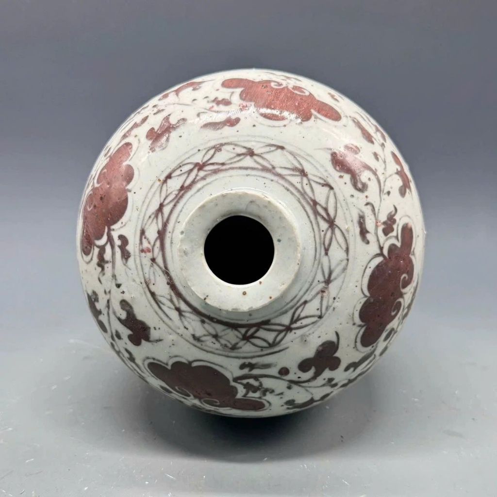 Kỹ thuật: Men trắng cổ, chữ viết vẽ tay bằng men đỏ nâu / men oxit đồng / sắt oxit