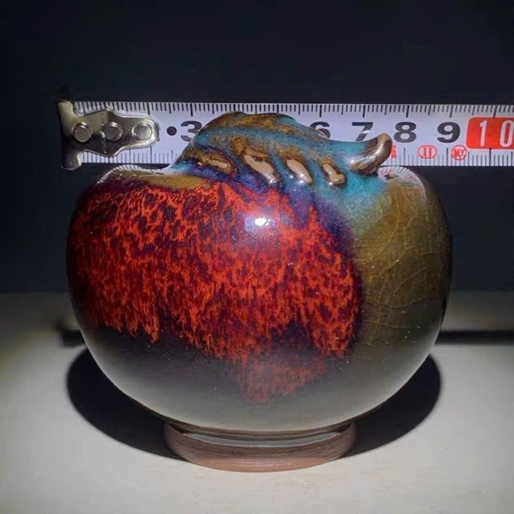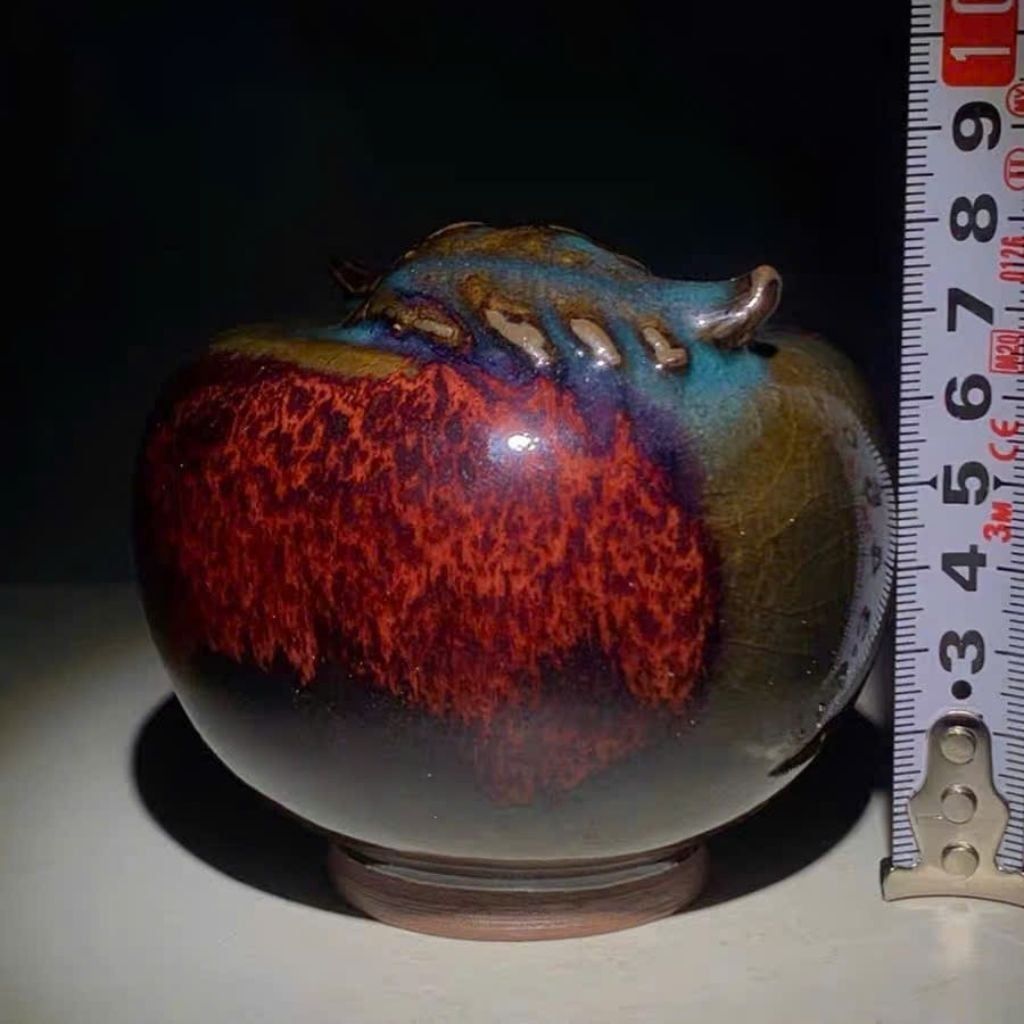 Sản phẩm sở hữu dáng tròn đầy, vững chãi, tượng trưng cho sự viên mãn và ổn định. Điểm cuốn hút nhất nằm ở lớp men hỏa biến với sự chuyển màu đầy kịch tính: