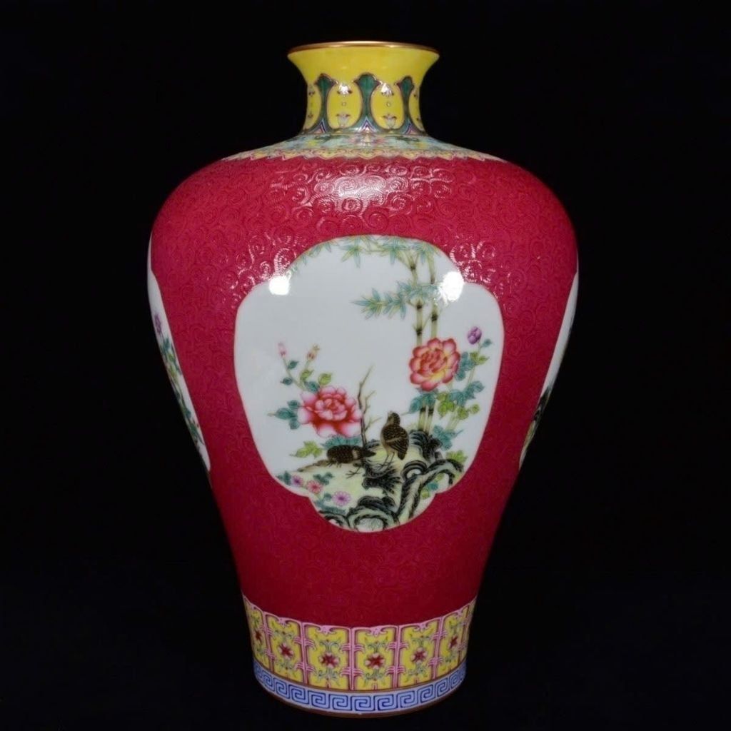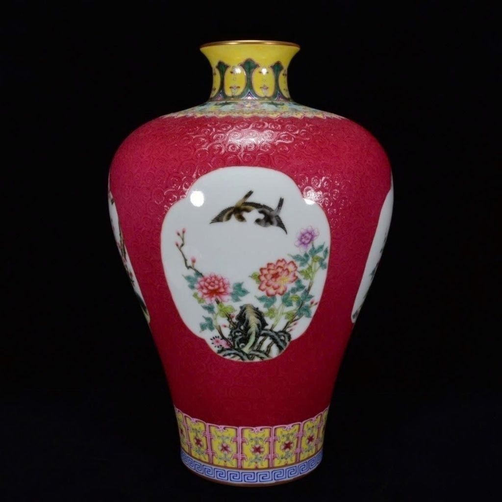Bình Gốm Sưu Tầm Men Đỏ Đào Hoa Mai Chim Hót – Bình Gốm Trang Trí Mang Lại May Mắn & Tài Lộc