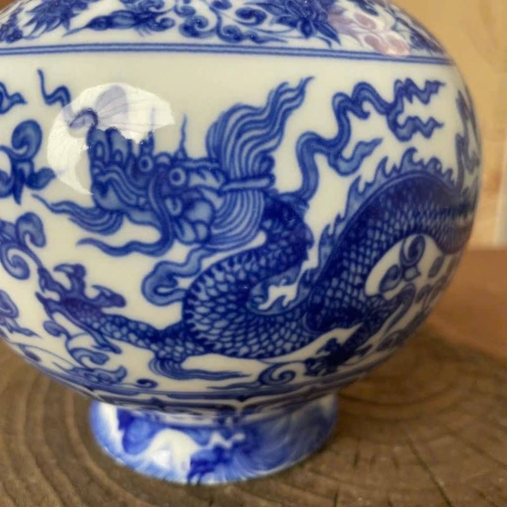 Giá trị sưu tầm cao: Men lam vẽ tay, họa tiết tinh xảo, phom dáng chuẩn cổ.