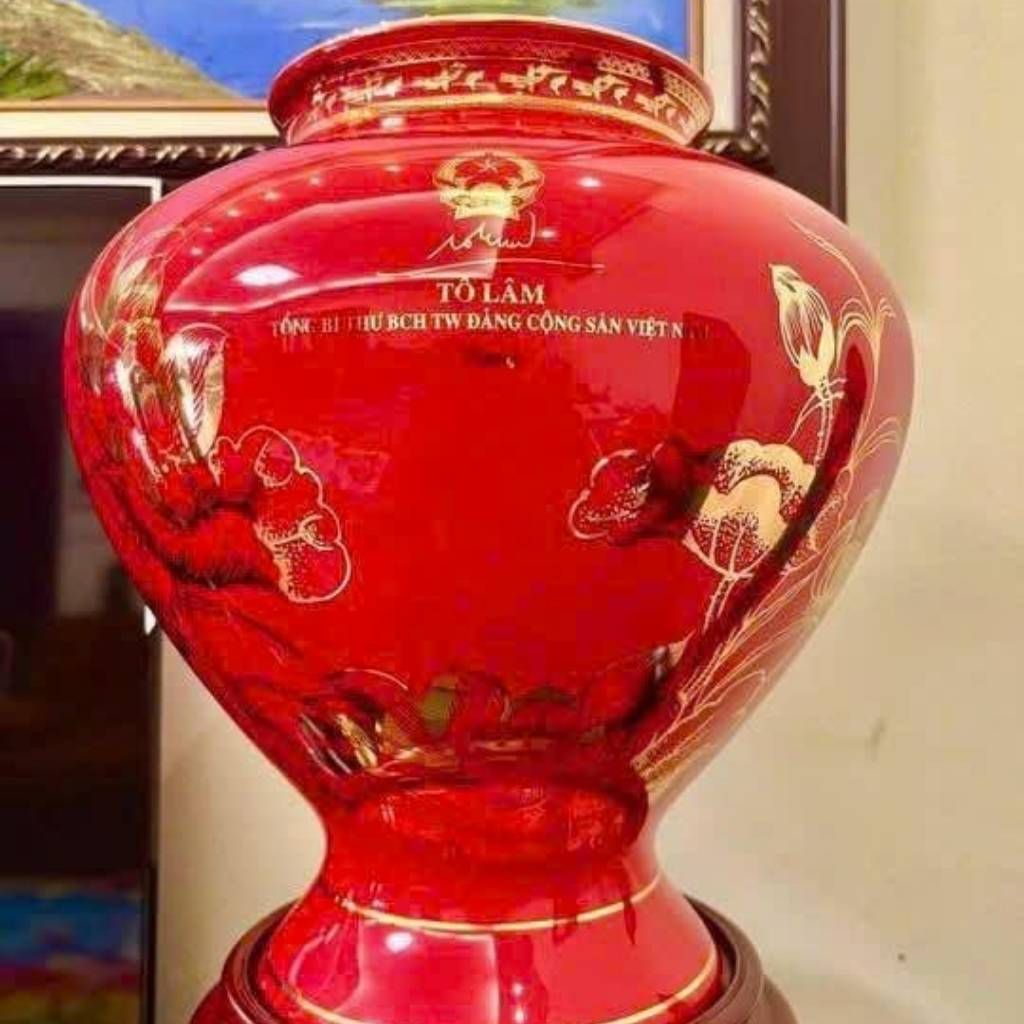 👉 Bình hút lộc gốm sứ Bát Tràng màu vàng in hình Tổng Bí Thư Tô Lâm là một sản phẩm tiêu biểu, kết hợp hài hòa giữa nghệ thuật gốm truyền thống, tính thẩm mỹ cao và ý nghĩa phong thủy cát lành.