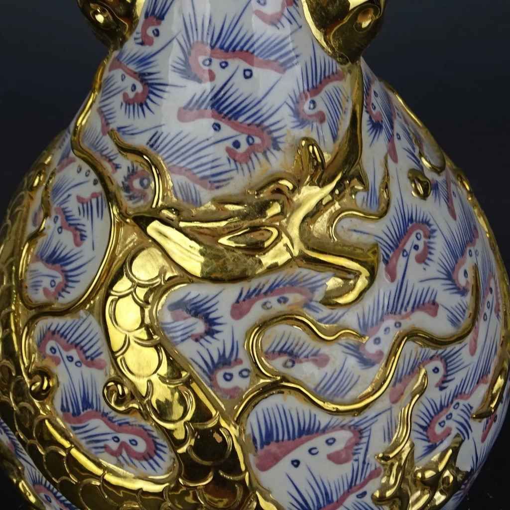 Sản phẩm giúp tăng tính thẩm mỹ và sự sang trọng cho phòng khách hoặc sảnh lớn. Họa tiết rồng mây còn mang ý nghĩa thu hút tài lộc, hỗ trợ công danh và sự phát triển. Ngoài ra, với kỹ thuật vẽ tay và dát vàng tinh xảo, chiếc bình còn có giá trị sưu tầm cao, càng để lâu càng thể hiện giá trị nghệ thuật.