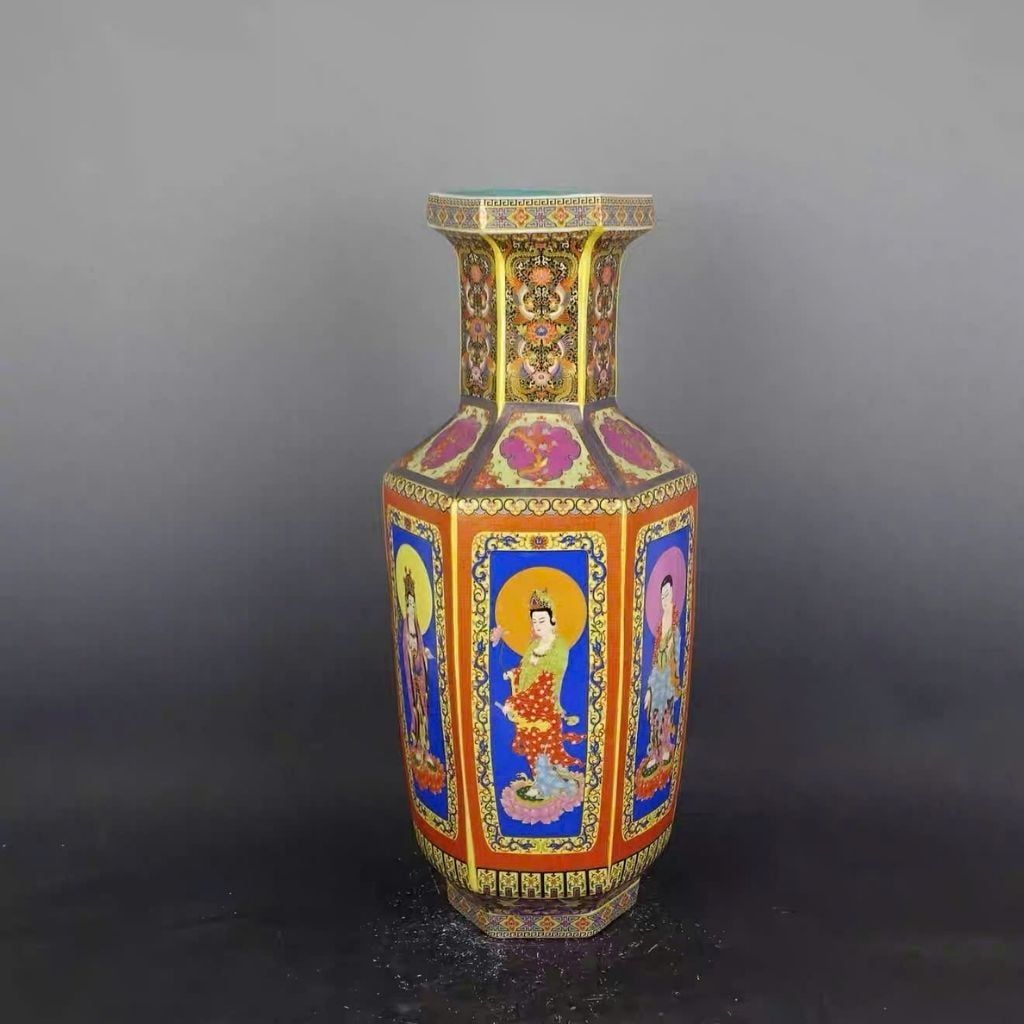 Giá trị sưu tầm hiếm: Dòng đại bình Pháp lam kích thước lớn, họa tiết Phật giáo vẽ tay không phổ biến.