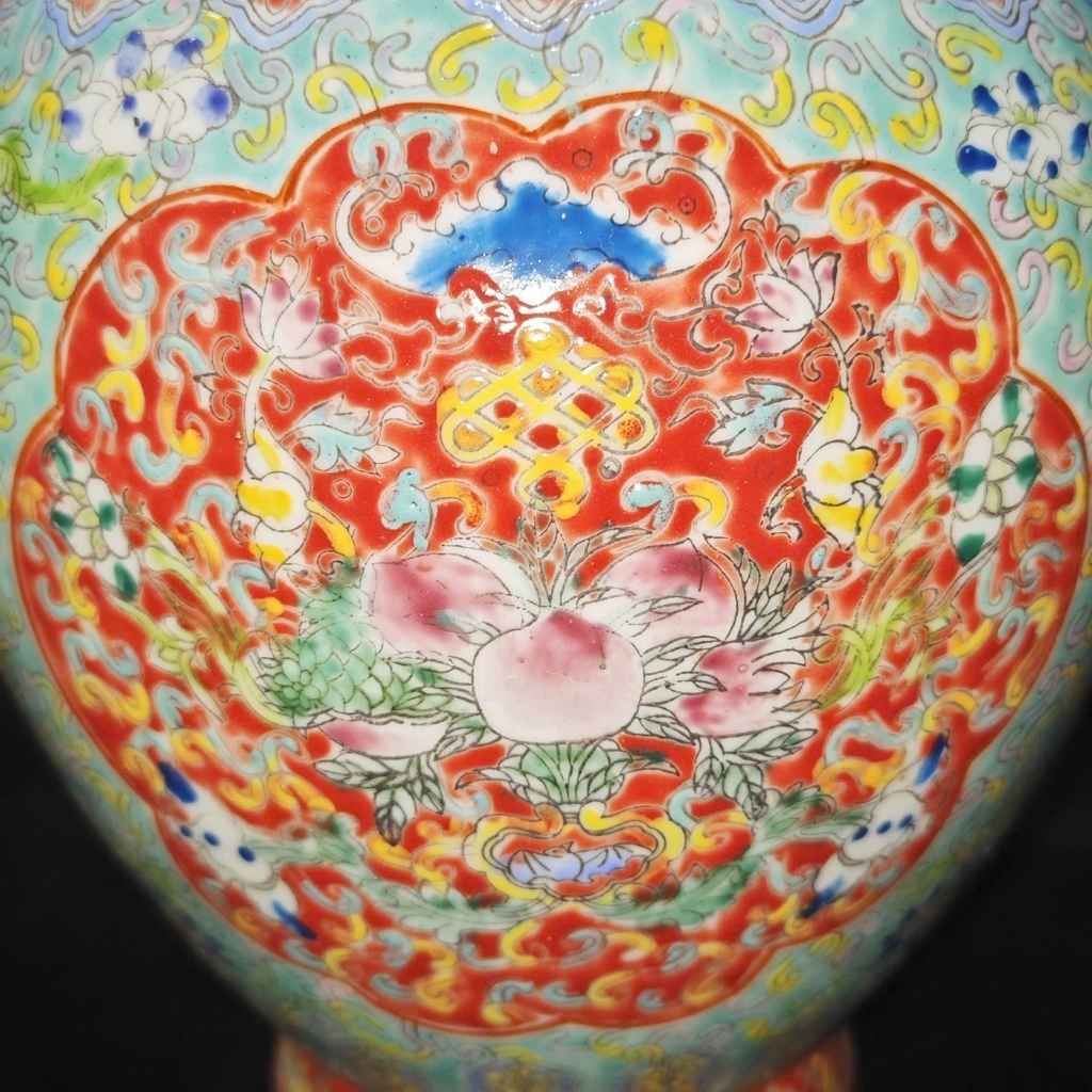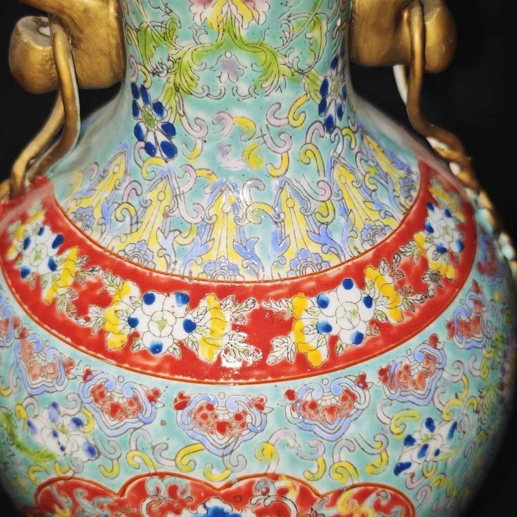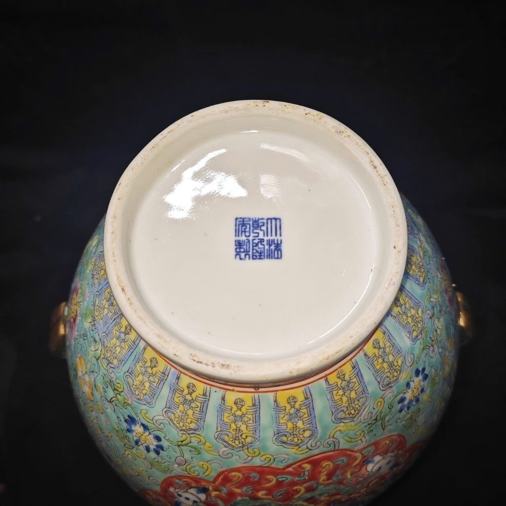Chiếc bình là tác phẩm nghệ thuật đỉnh cao của dòng gốm sứ Pháp Lam, nổi bật với kỹ thuật phối màu rực rỡ và đường nét trang trí cầu kỳ. Dáng bình cân đối, uy nghi, tạo cảm giác vững chãi và bề thế khi trưng bày.
