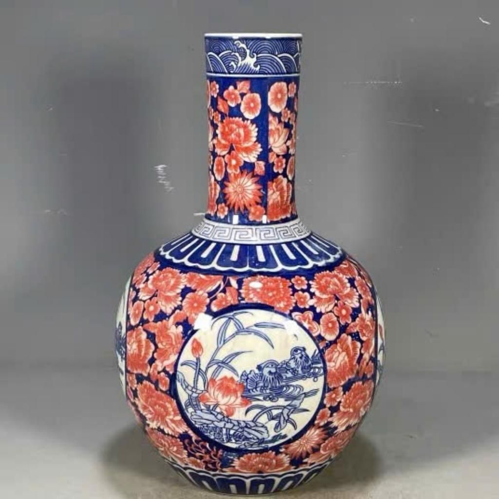 Hoa văn gấm phủ nền đỏ hồng rực rỡ toàn thân bình