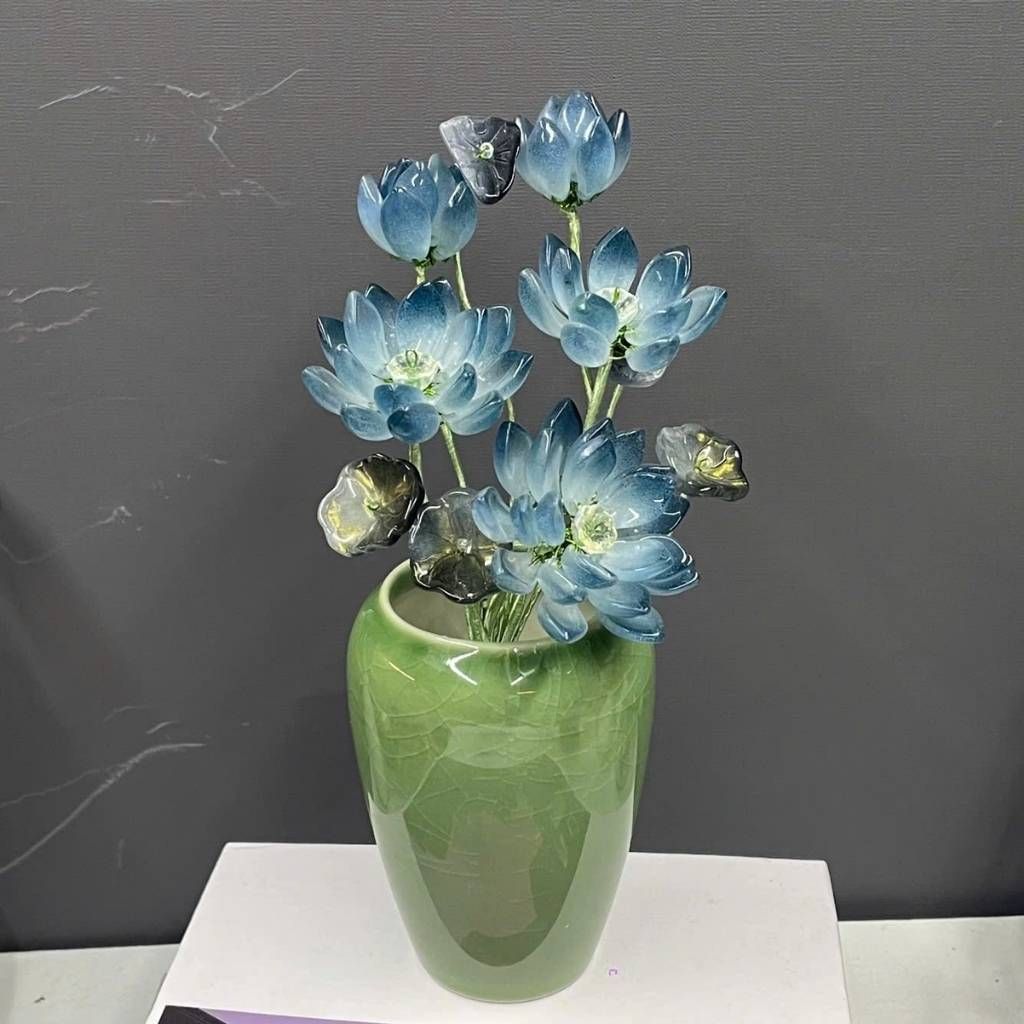 Sự kết hợp giữa men gốm truyền thống và pha lê hiện đại tạo nên một vật phẩm có giá trị nghệ thuật cao, dễ phối với nhiều không gian sống.