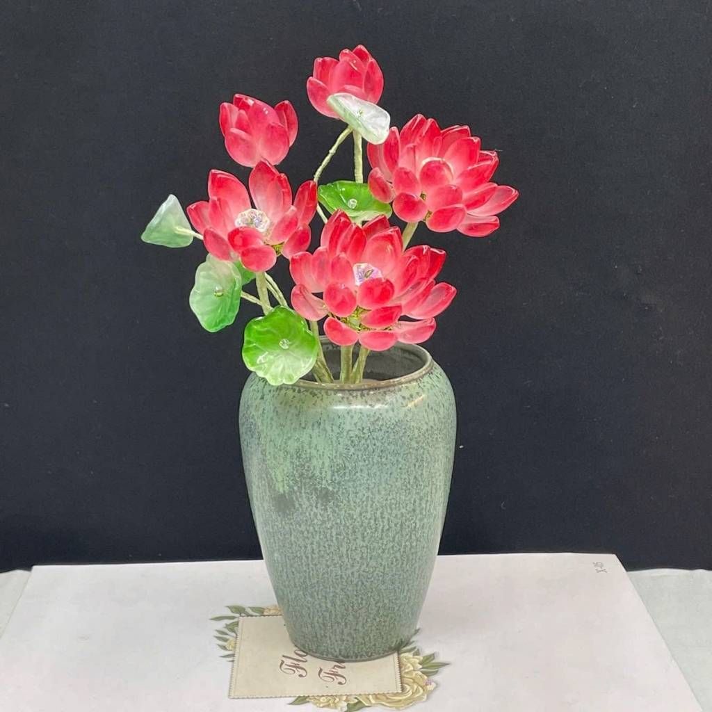 Bộ Bình Hoa Sen Đá Đỏ – Vật Phẩm Phong Thủy Sang Trọng, Mang Đến Bình An & Vượng Khí
