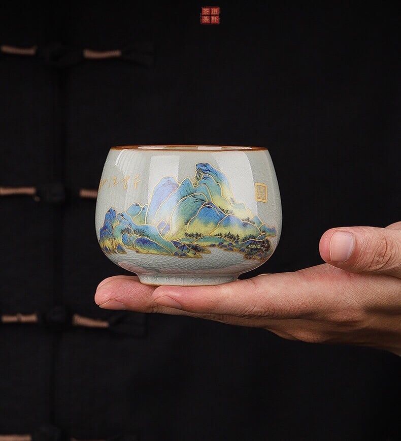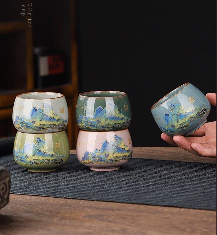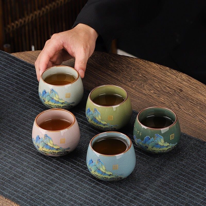 BỘ TÁCH TRÀ KHẮC HOẠ GIANG SƠN Chất liệu: Gốm sứ cao cấp