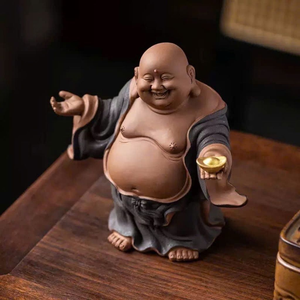 Phật Di Lặc là biểu tượng của niềm vui, sự lạc quan và an yên. Hình ảnh tay cầm thỏi vàng mang thông điệp về tài lộc dồi dào, cuộc sống đủ đầy và mọi việc hanh thông.