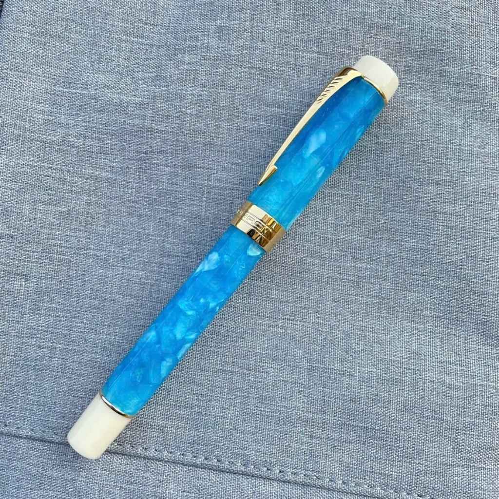 Thiết kế: Thân bút vân đá tự nhiên với hiệu ứng chuyển màu lấp lánh, dáng bút cân đối, cầm chắc tay