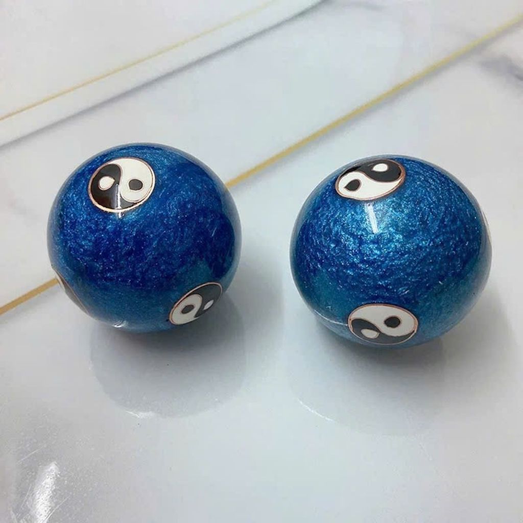 Cặp bi được chế tác từ đá tự nhiên với bề mặt nhẵn mịn, cầm chắc tay và tạo cảm giác mát dịu khi sử dụng. Sắc xanh sâu thẳm kết hợp biểu tượng Thái Cực Đồ không chỉ tạo điểm nhấn thẩm mỹ mà còn mang ý nghĩa cân bằng giữa thể chất và tinh thần.