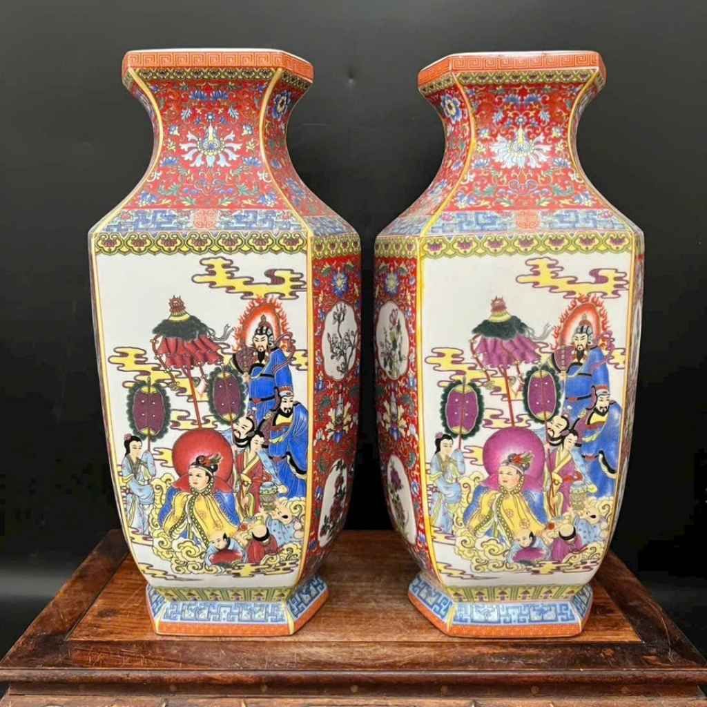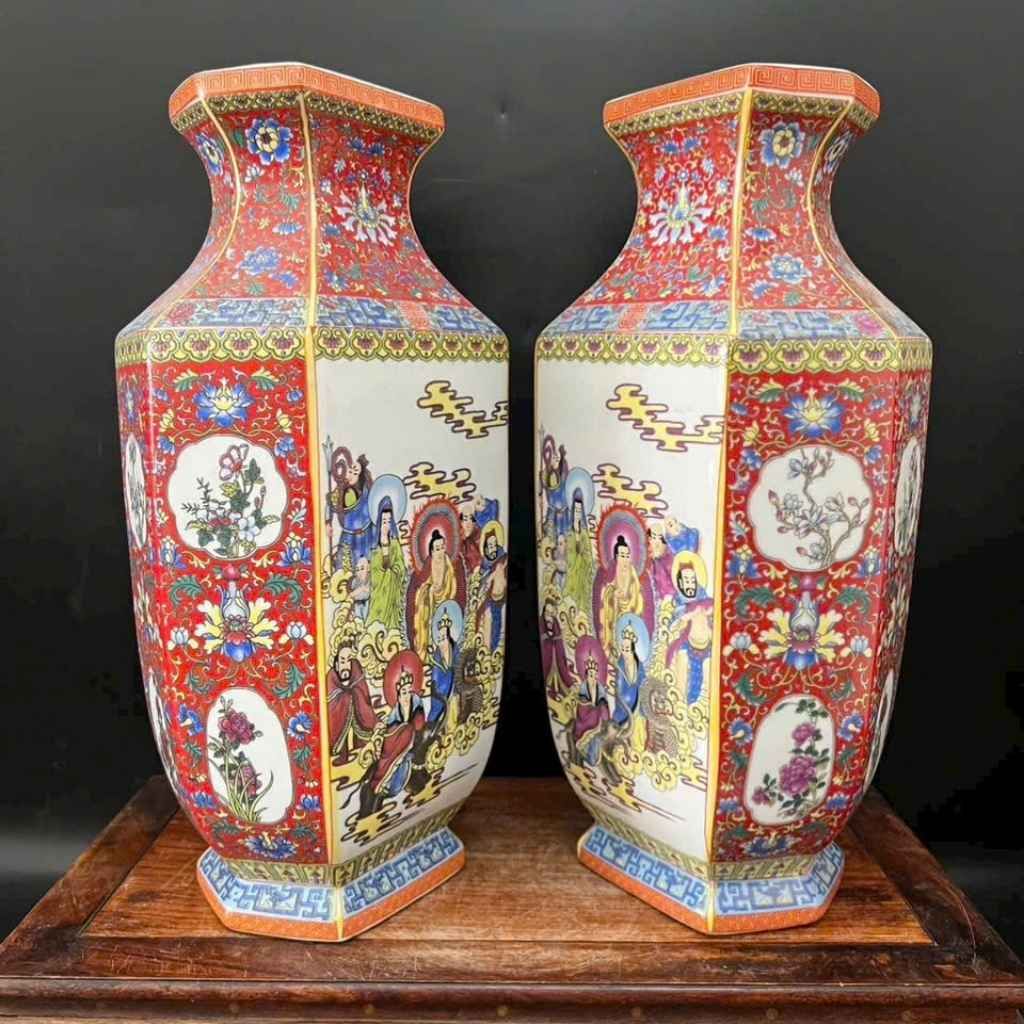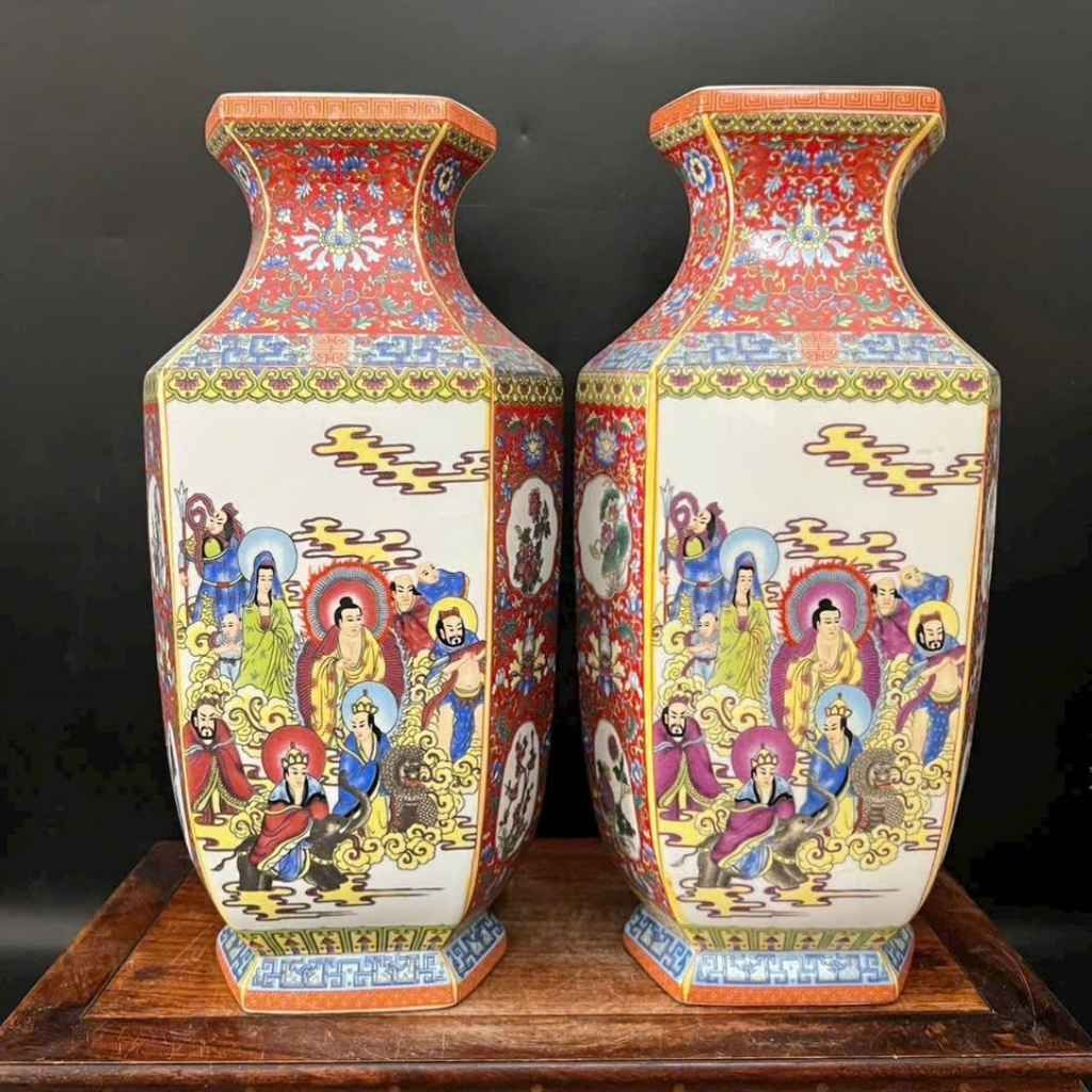 Cặp Bình Sứ Tích Đức Phật Và Bát Tiên 26cm – Bình Lục Giác Ngũ Sắc Trang Nghiêm, Quà Tặng Phong Thủy Ý Nghĩa