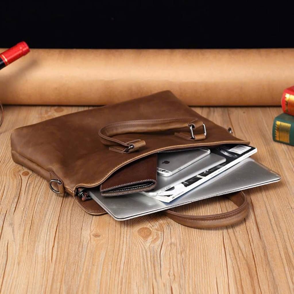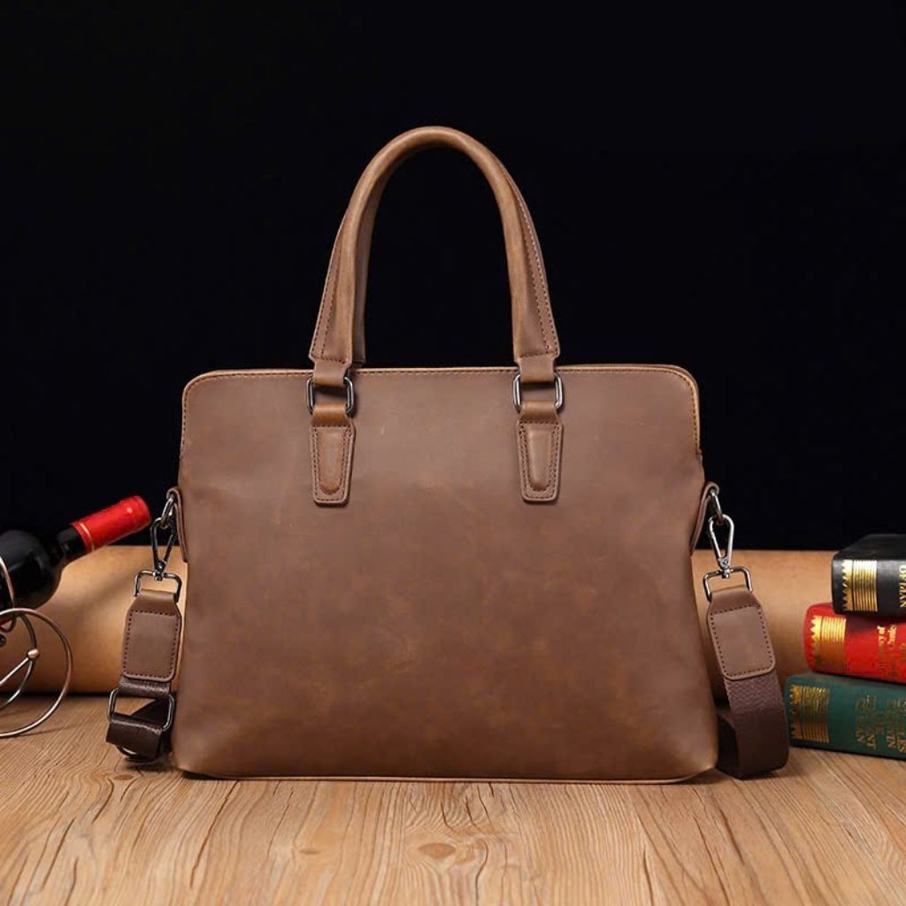 Một chiếc cặp da sang trọng là điểm nhấn hoàn hảo cho phong thái chuyên nghiệp của quý ông nơi công sở.