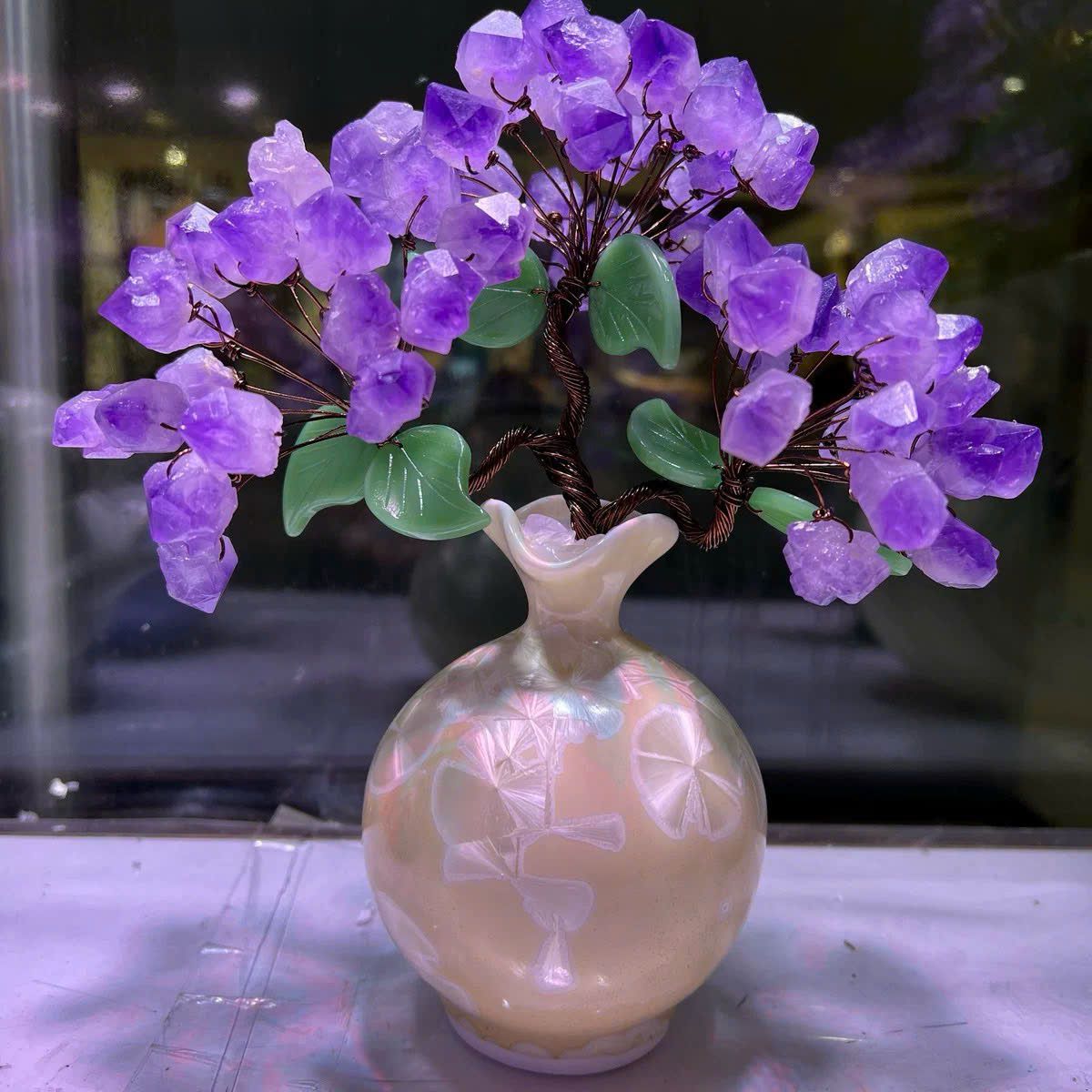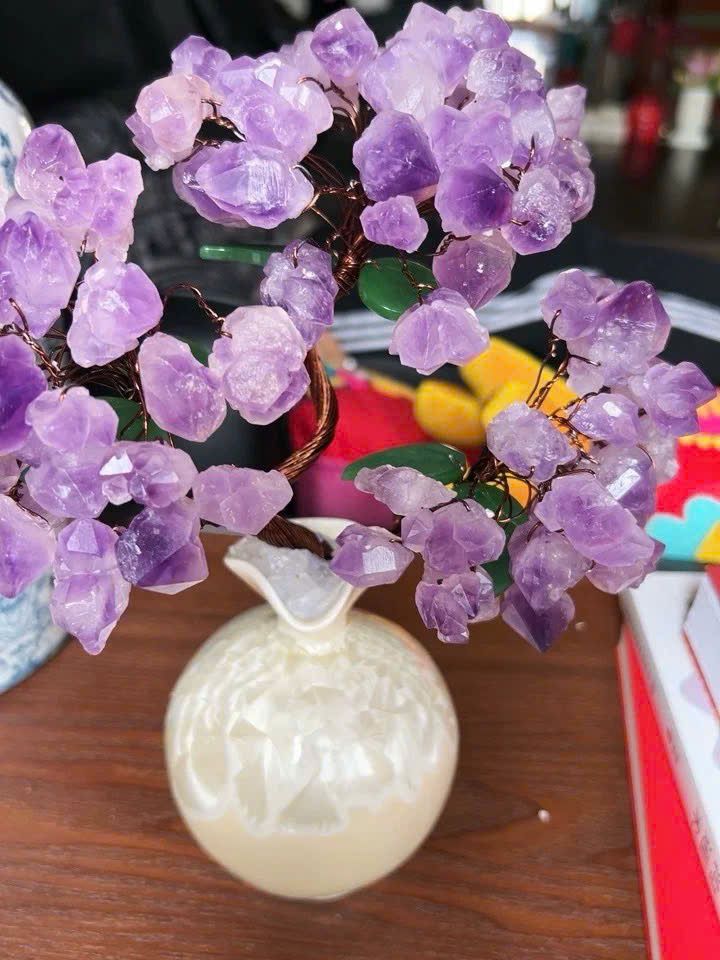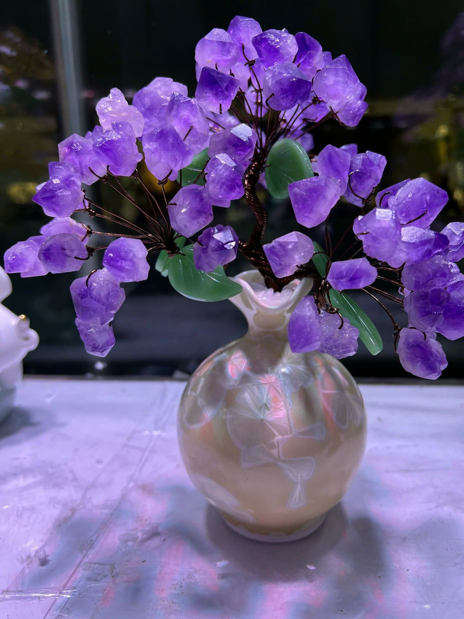Châu cây hoa tím trang trí Chất liệu thạch anh tím Sử dụng đồ trưng bày Kt 15*28