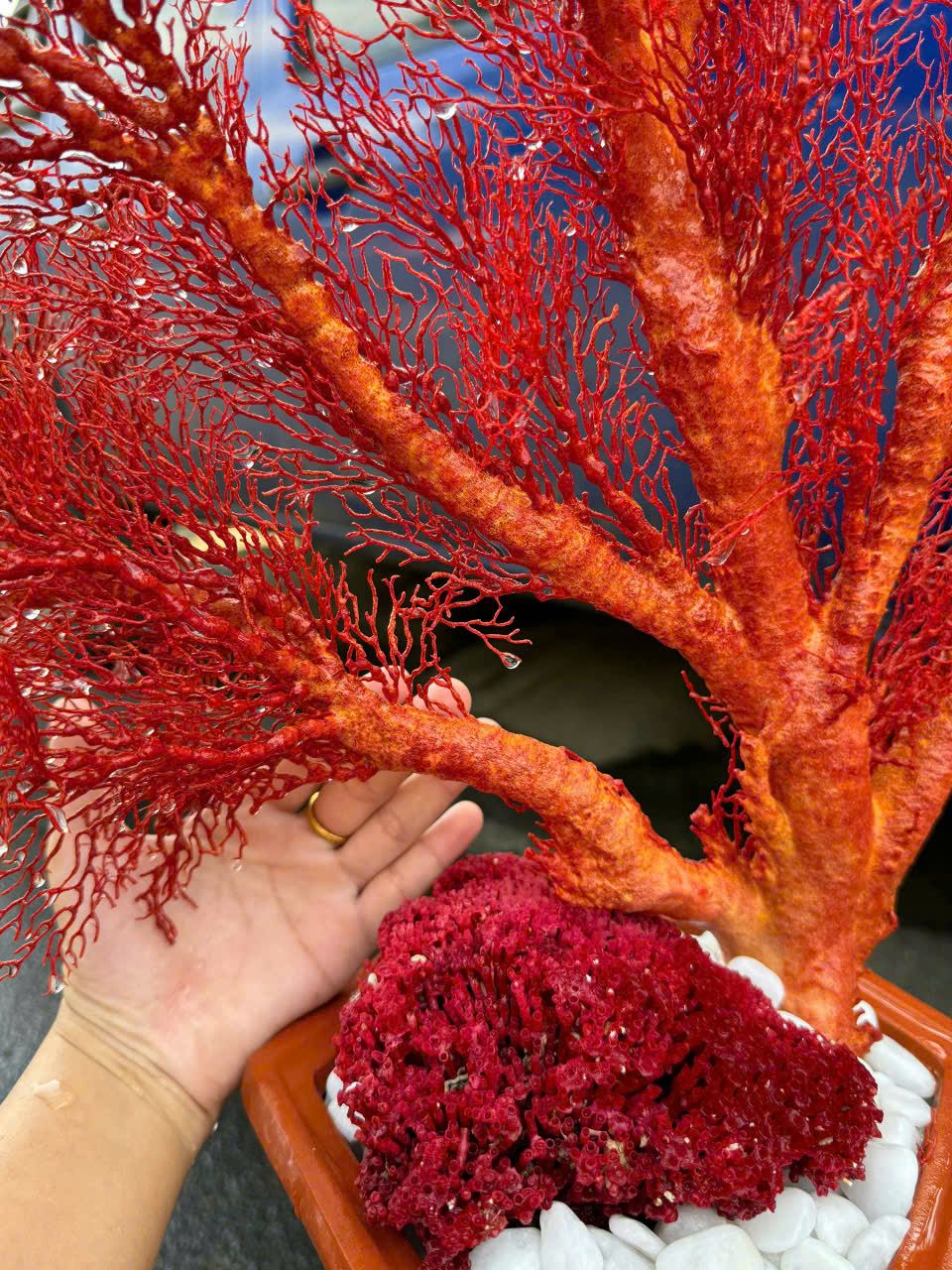 Chậu san hô đỏ tự nhiên khô sạch Thích hợp trưng bày phong thủy cao 80cm ngang 66cm. bao ship