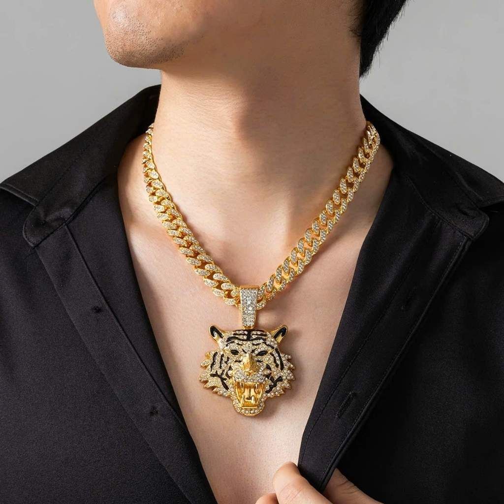 Dây Chuyền Hip-Hop Nam Đầu Hổ Mạ Vàng – Thời Trang Cá Tính, Nổi Bật & Sang Trọng