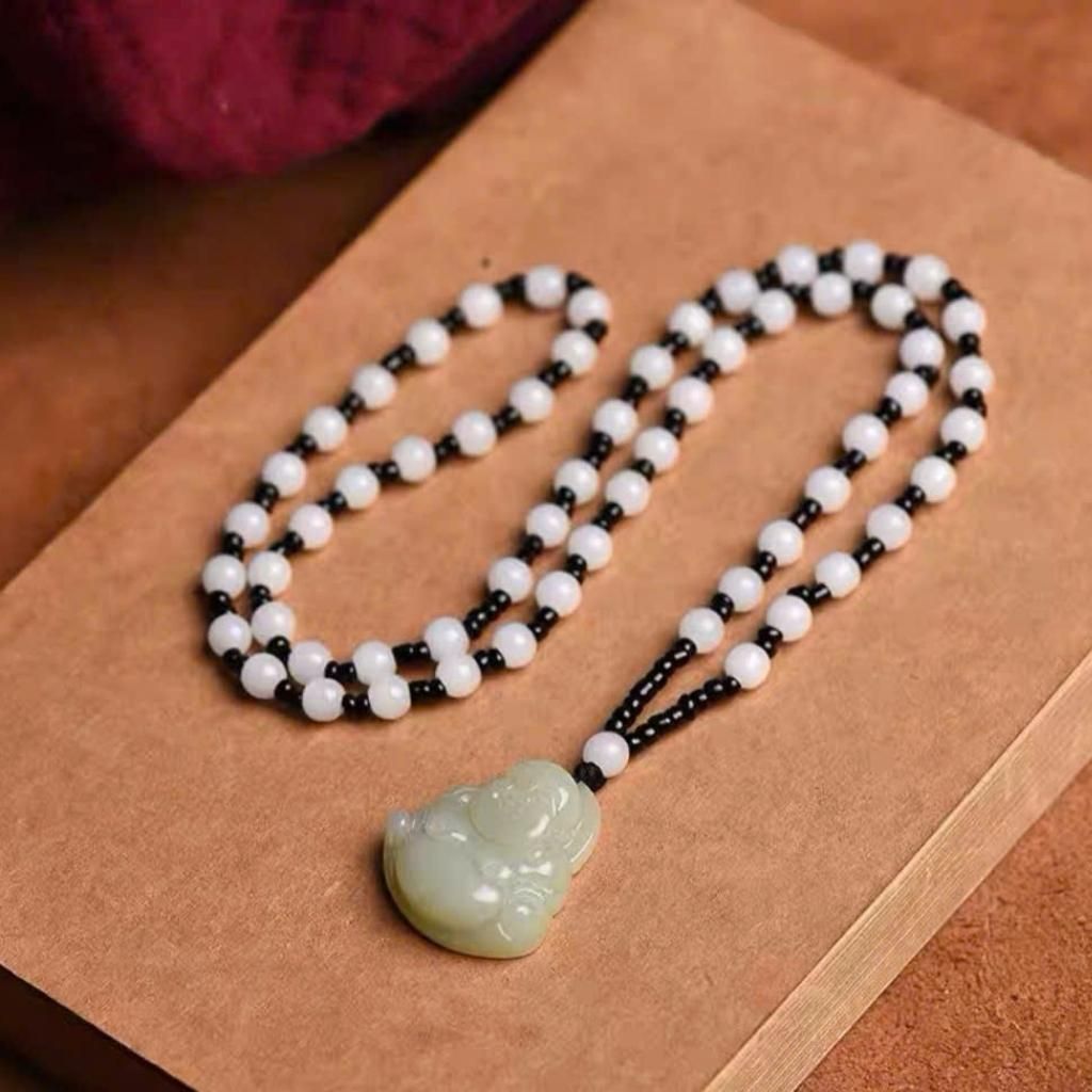 Dây Chuyền Mặt Phật Ngọc Trắng Tự Nhiên – Quan Âm Cười / Phật Di Lặc – Bình An, May Mắn, Hộ Thân