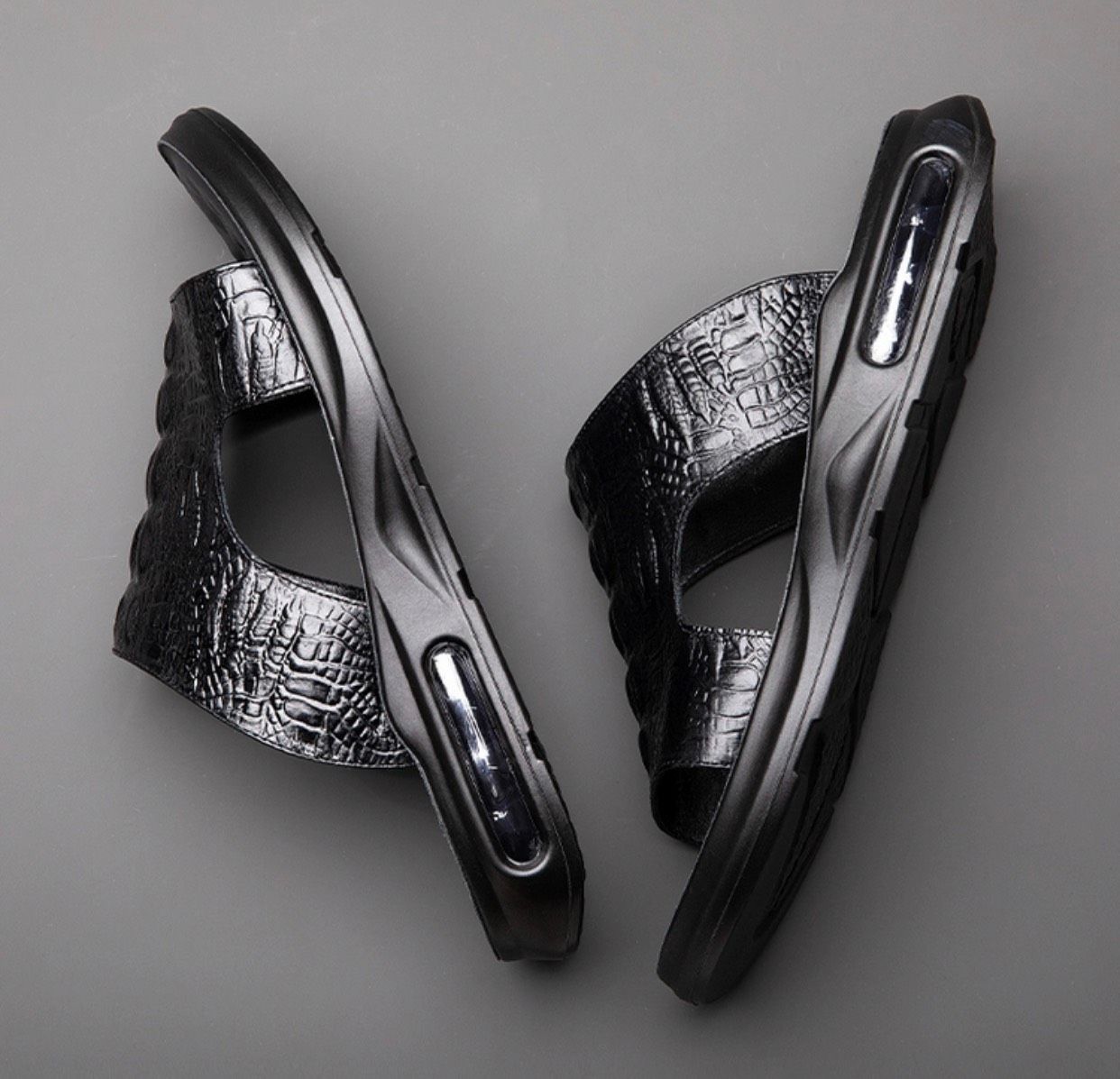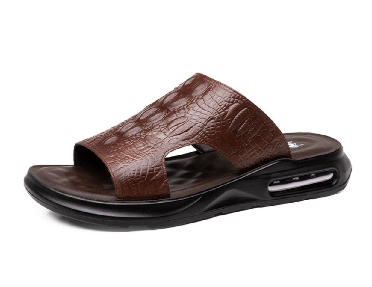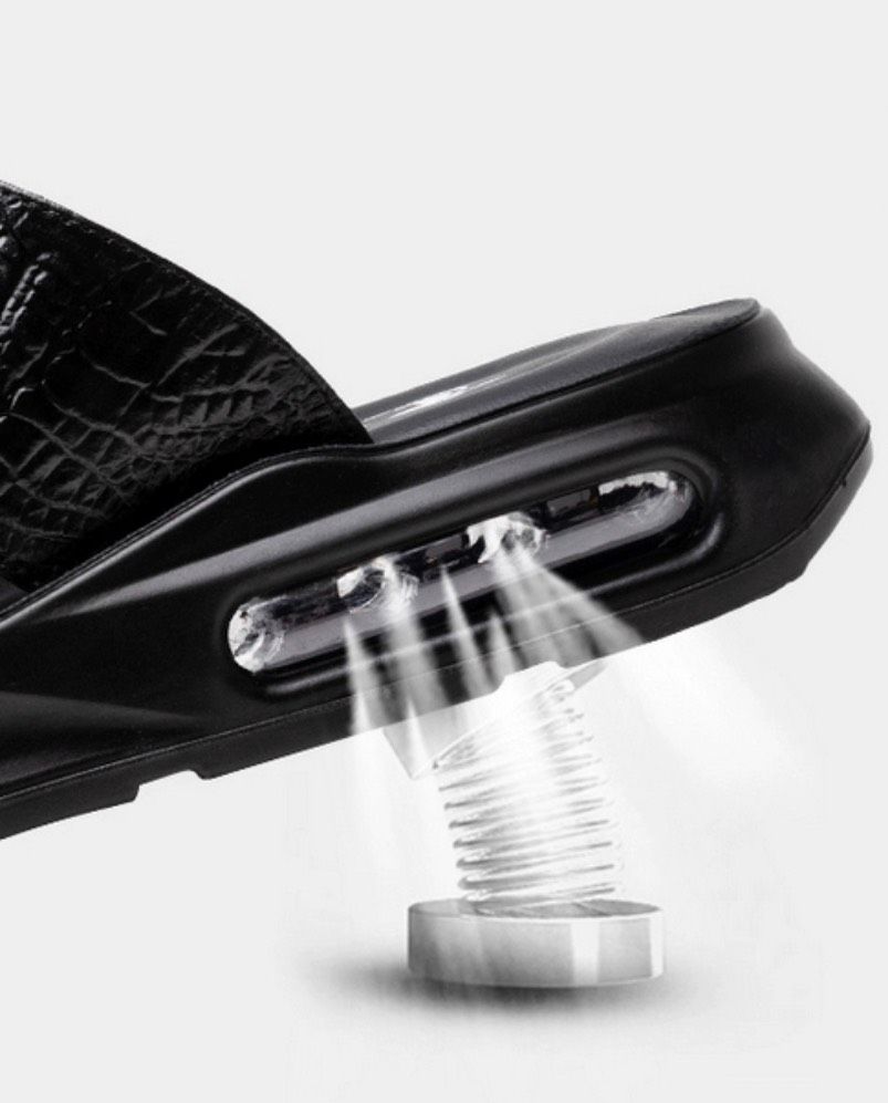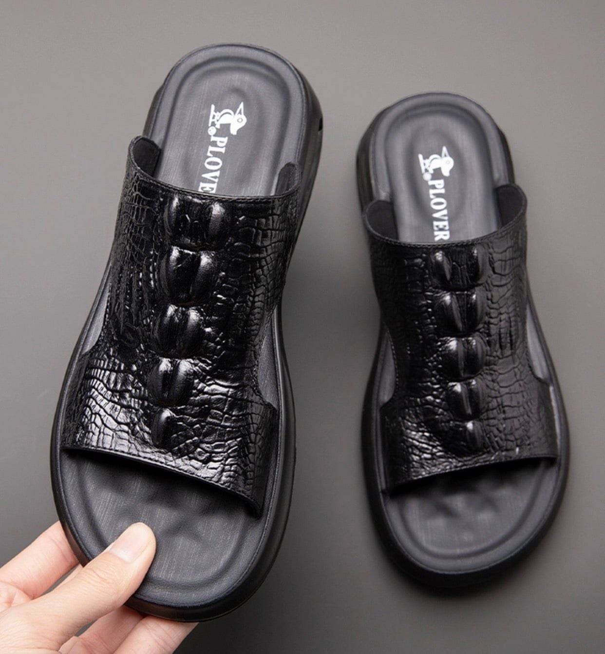Dép nam da thật hoạ tiết cá sấu cao cấp Chất liệu da bò + đế polyuretan lót cao su Mùa áp dụng mùa hè