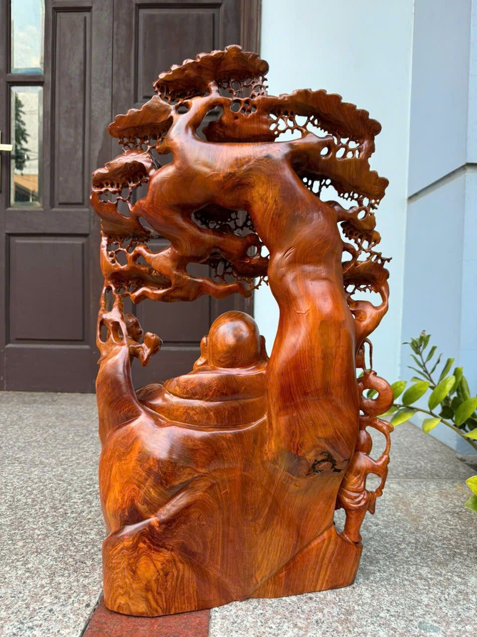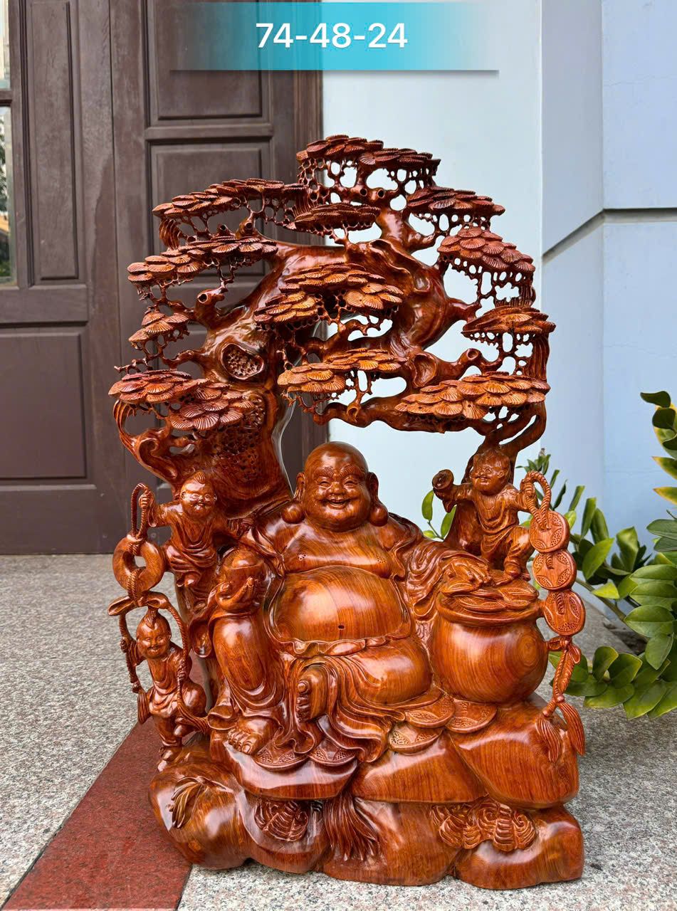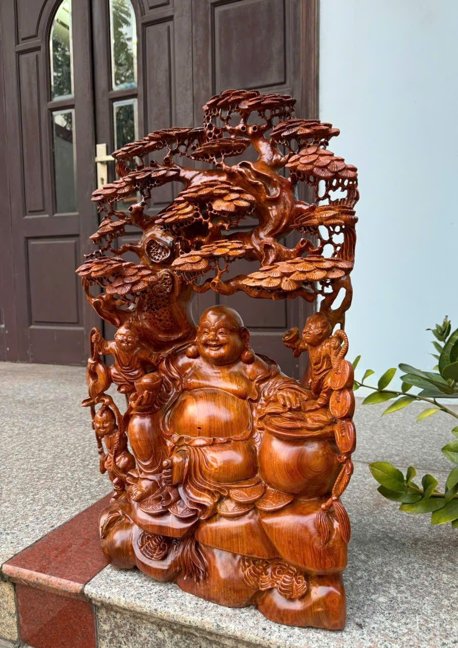 Di Lặc Tam Phúc Ngồi Gốc Tùng Gỗ Hương Ta
