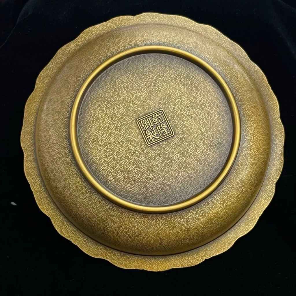Phần vành đĩa uốn lượn như cánh hoa, kết hợp hoa văn triện cổ chạy viền, tạo nên tổng thể hài hòa, mang đậm phong cách cung đình truyền thống. Sản phẩm thích hợp trưng bày trên bàn làm việc, kệ sách, tủ trưng bày hoặc dùng làm quà tặng trang trọng cho những dịp đặc biệt.