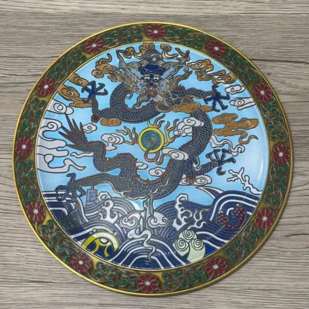 Đĩa Thưởng Rồng Chạm Pháp Lam Cổ Đẹp – Tác Phẩm Nghệ Thuật Sưu Tầm Sang Trọng
