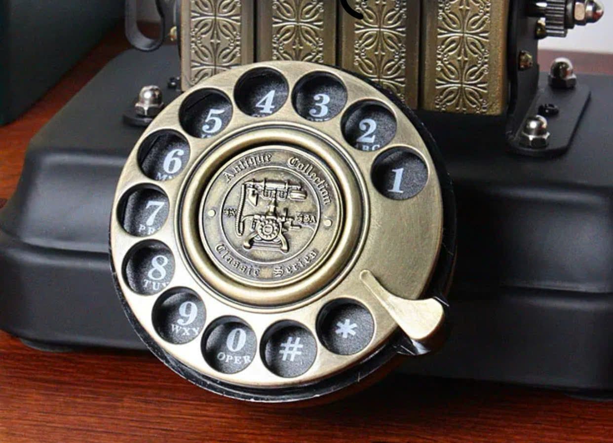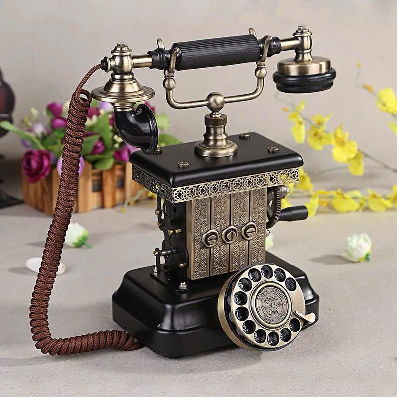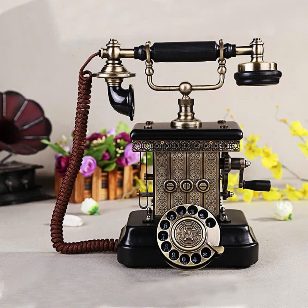 Điện thoại cố định để bàn Chất liệu đồng + hợp kim kẽm + dây cuộn vải Sử dụng đồ trưng bày Kt 24.6*16.4*29.1 nặng 2kg