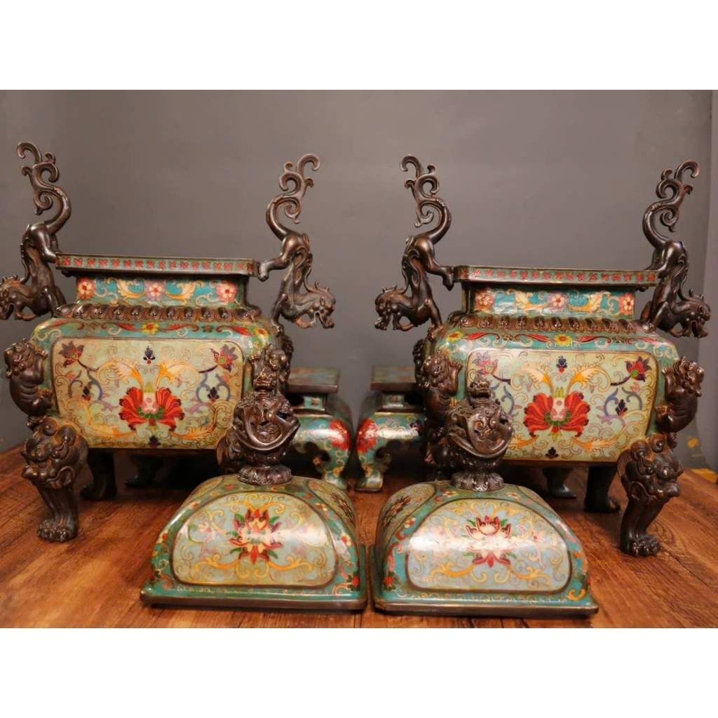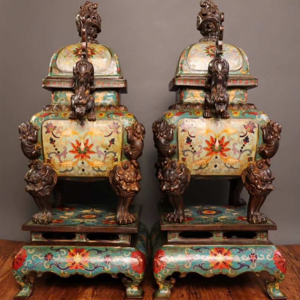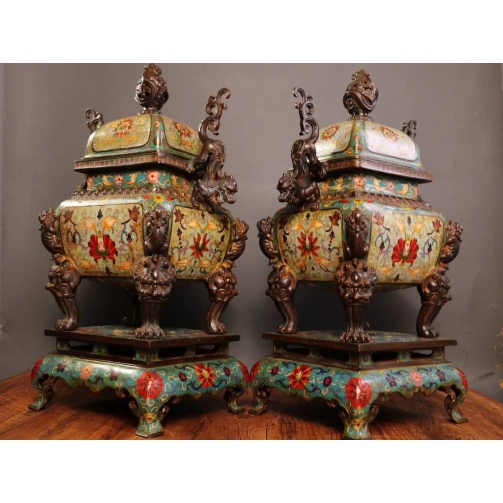 Chất liệu: Đồng nguyên khối kết hợp tráng men pháp lam cổ