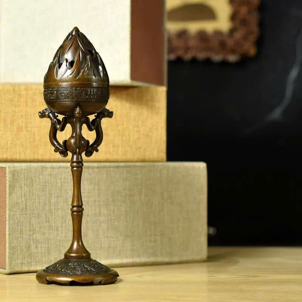 Đỉnh xông trầm đồng màu nâu cổ chính là lựa chọn hoàn hảo để không gian thưởng trà, thiền định hay bàn thờ thêm phần trang nghiêm, thanh tịnh.