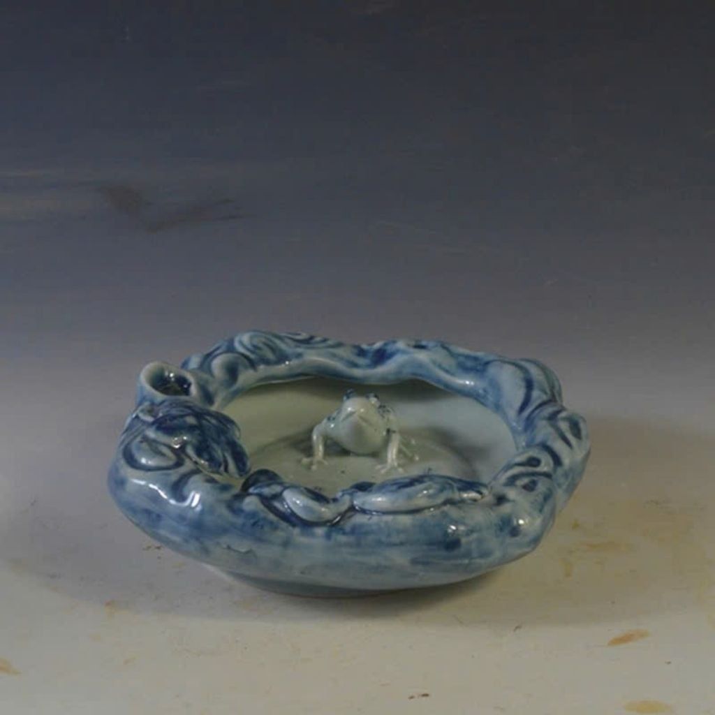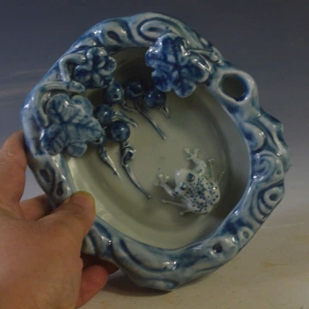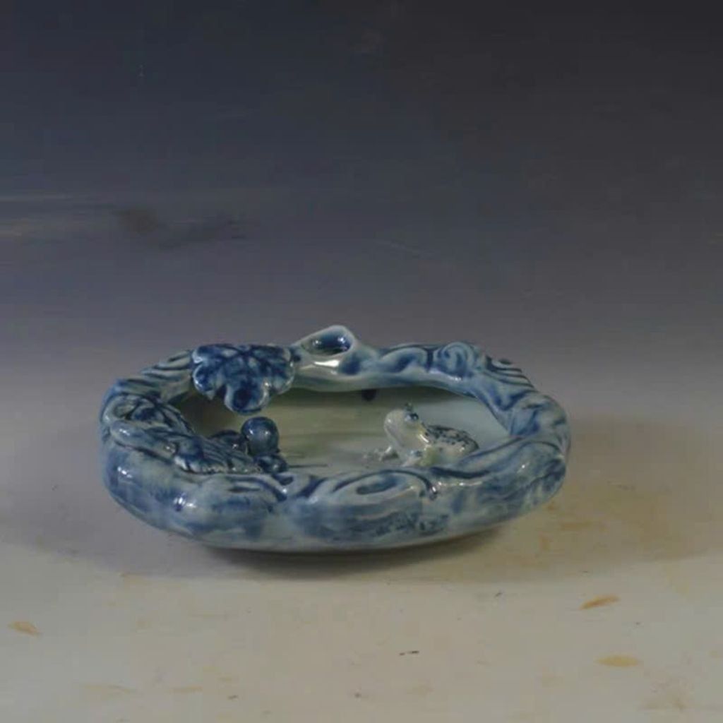 Gạt Tàn Gốm Sứ Hoa Lam Đắp Nổi "ẾCH VỜN SEN" – Decor Bàn Trà Độc Lạ, Đậm Chất Nghệ Thuật