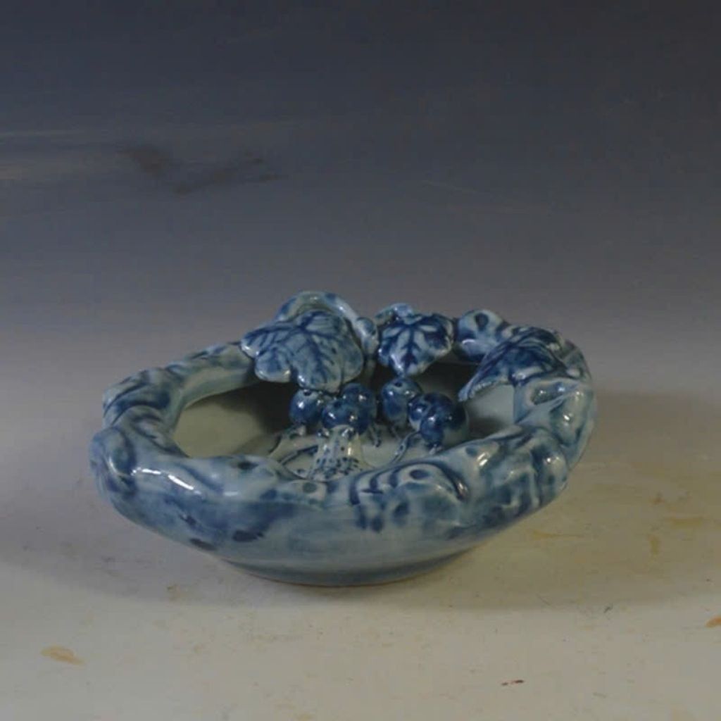 Tên sản phẩm: Gạt Tàn Gốm Sứ Hoa Lam Đắp Nổi "ẾCH VỜN SEN"