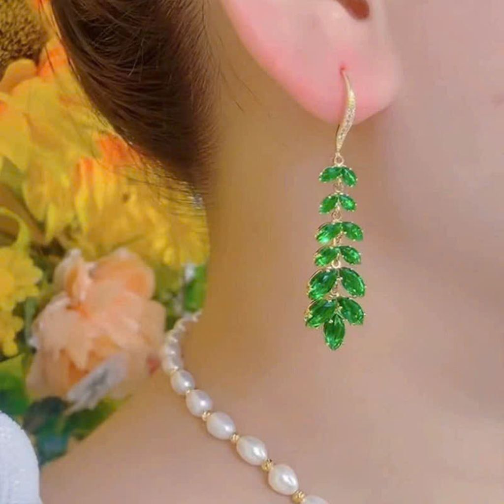 Hoa tai tua rua lá pha lê xanh BKFAVN-9059