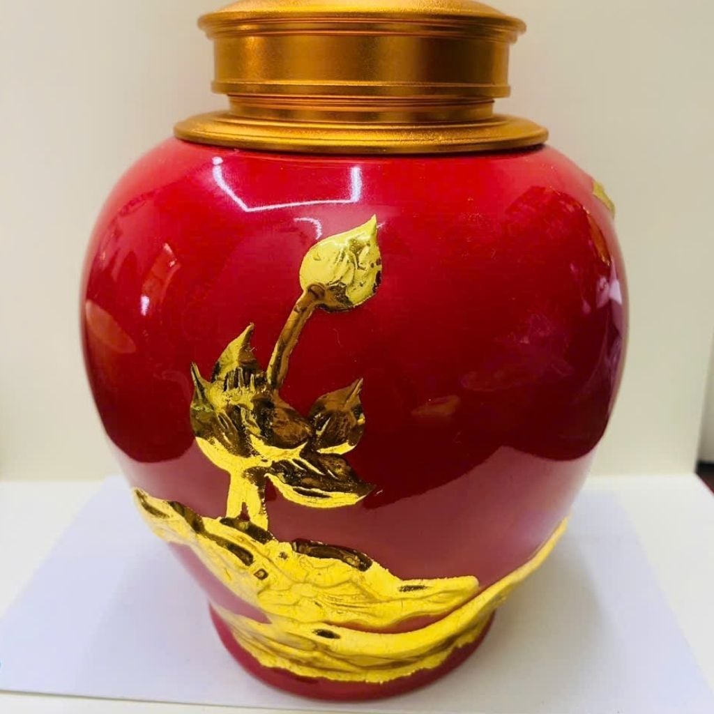 - Tên sản phẩm: Hũ Đựng Chè Gốm Sứ Đỏ Dát Vàng Kim Sen