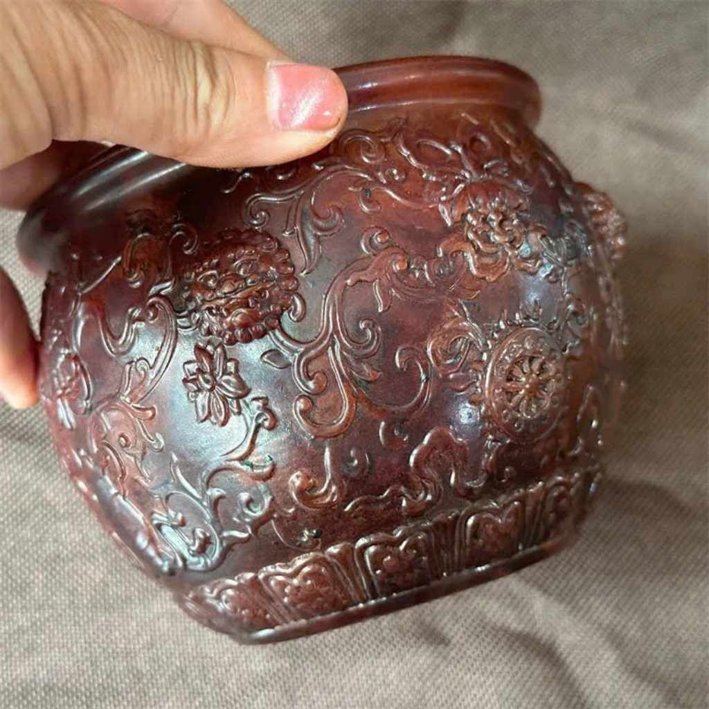 Hũ Tụ Bảo Tài Lộc Bằng Hổ Phách Cũ Xưa Chạm Rồng – Biểu Tượng May Mắn, Phú Quý