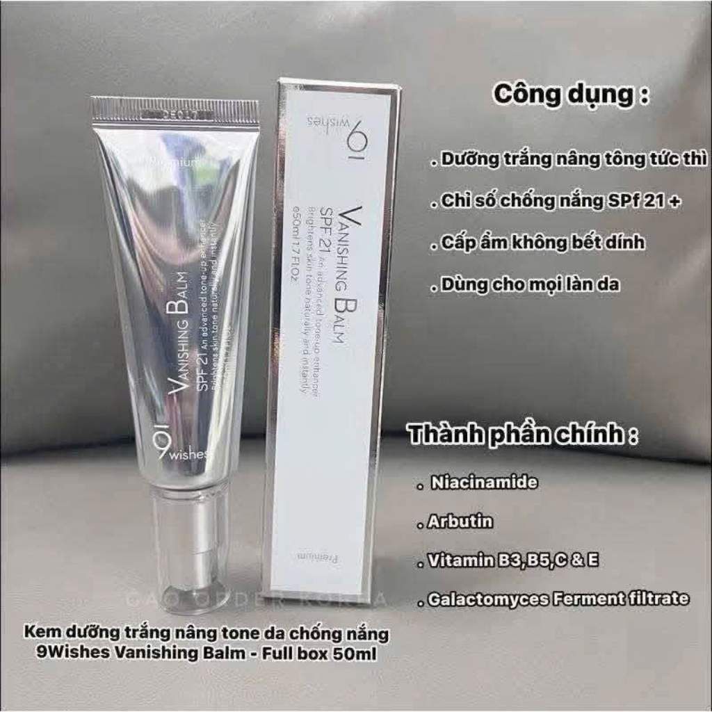 Thông tin sản phẩm Kem Dưỡng Trắng Nâng Tông Da 9Wishes Premium Tone Up Vanishing Balm