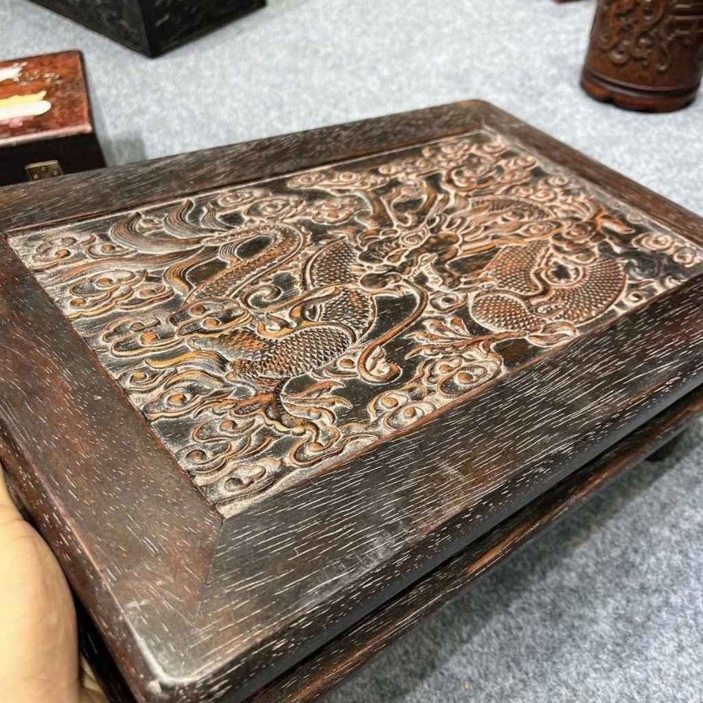 4. Đặt Mua Khay Trà Gỗ Mun Chạm Khắc Rồng Phong Thủy Tại Bảo Khánh