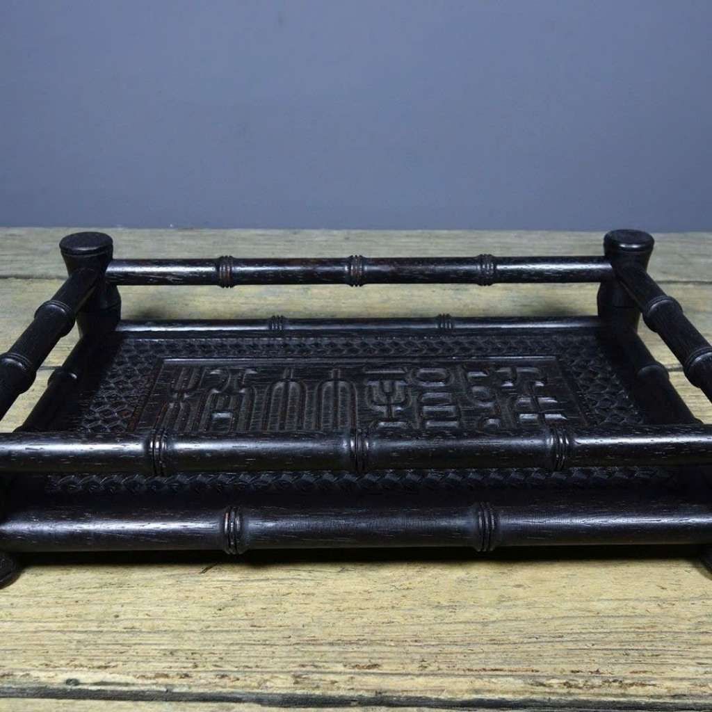 - Tên sản phẩm: Khay Trà Gỗ Mun Chạm Triện Cổ Sưu Tầm Đẹp