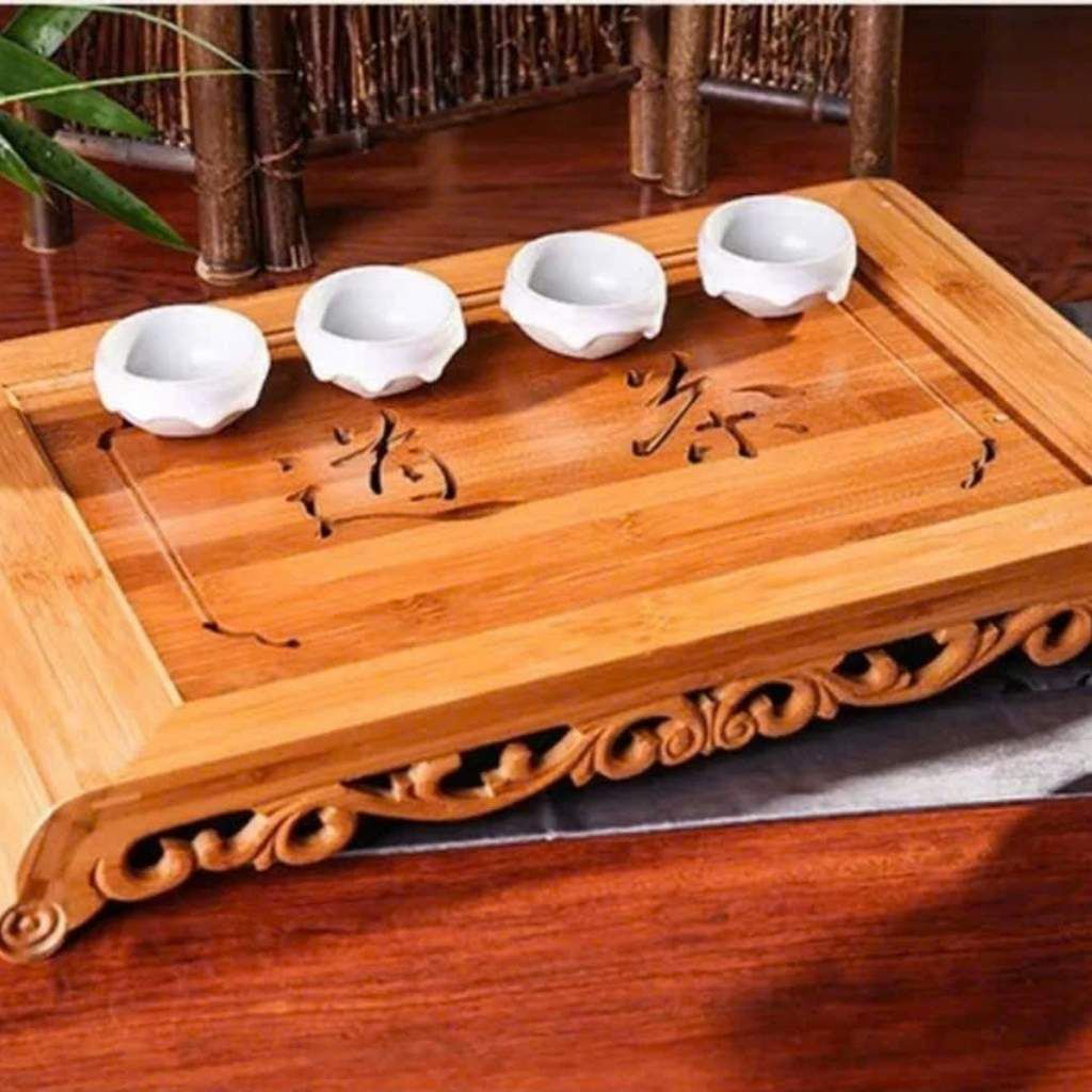 Khay Trà Khắc Trúc và Thư Pháp Cỡ Lớn – Thanh Tao, Tiện Dụng Cho Không Gian Trà Đạo