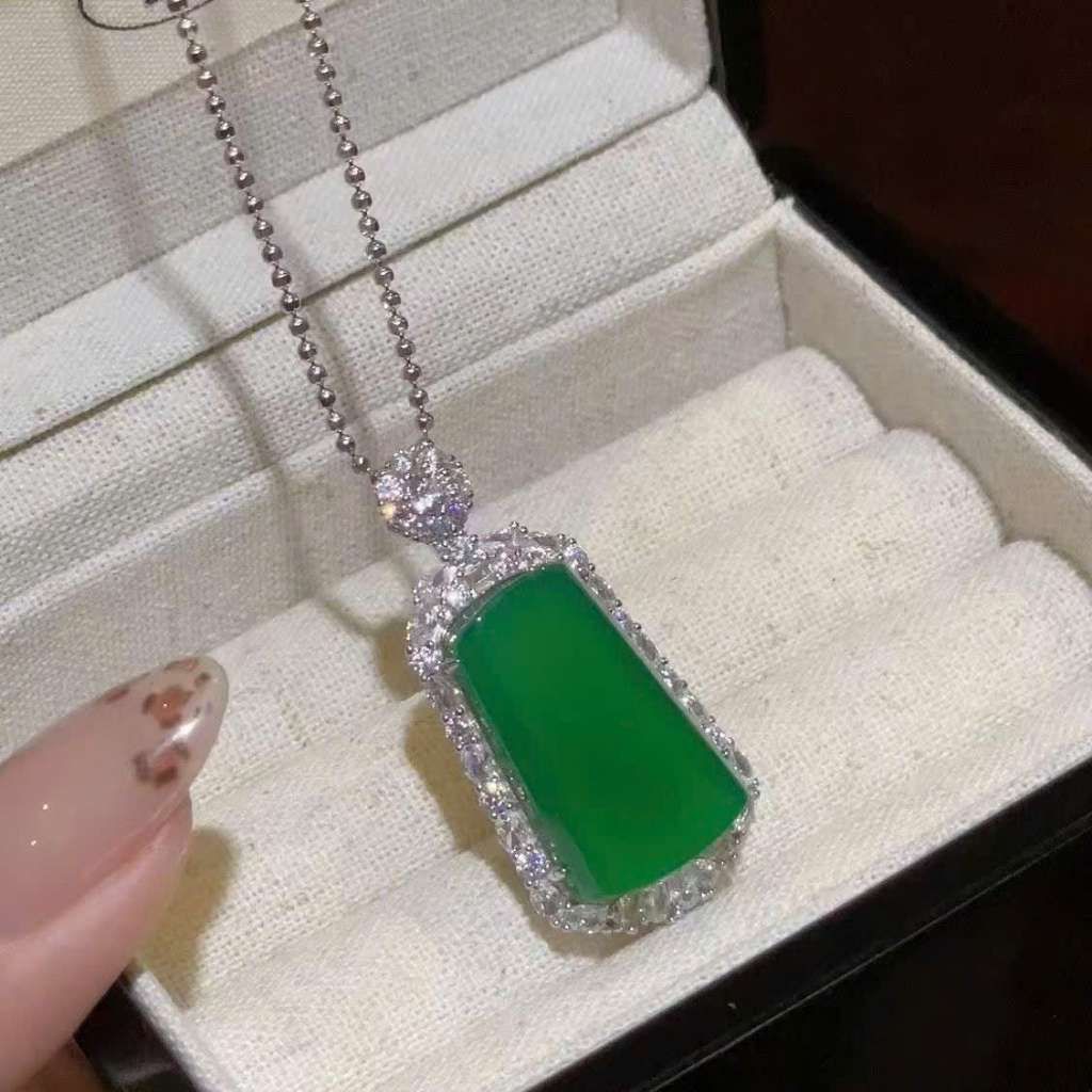 Mặt Dây Chuyền Ngọc Bích Đính Kim Cương Bạc Cao Cấp – Quý Phái, Sang Trọng, Tỏa Sáng Mọi Ánh Nhìn