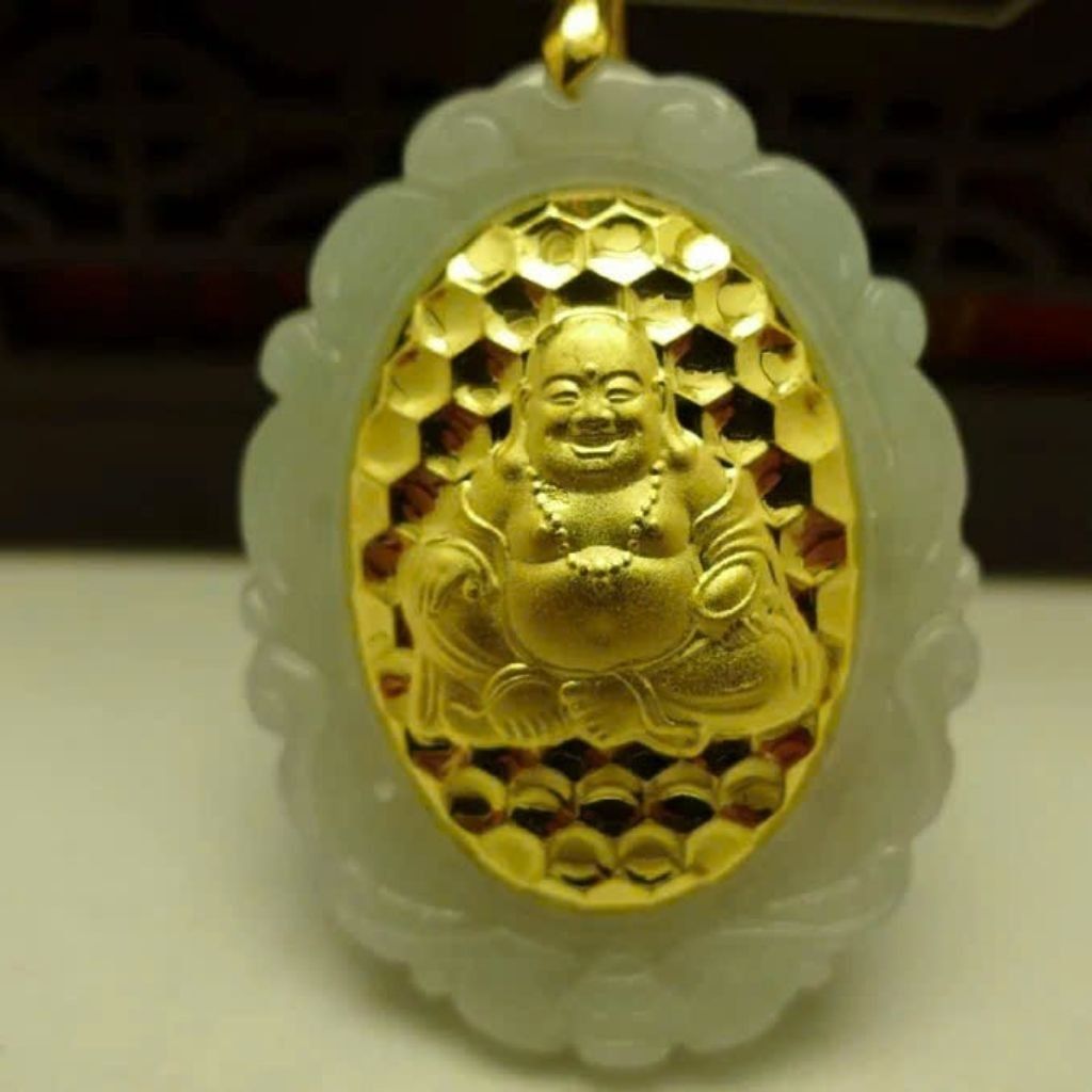 Mặt Dây Chuyền Phật Di Lặc Ngọc Bích Viền Vàng – Sang Trọng, Bình An Và May Mắn