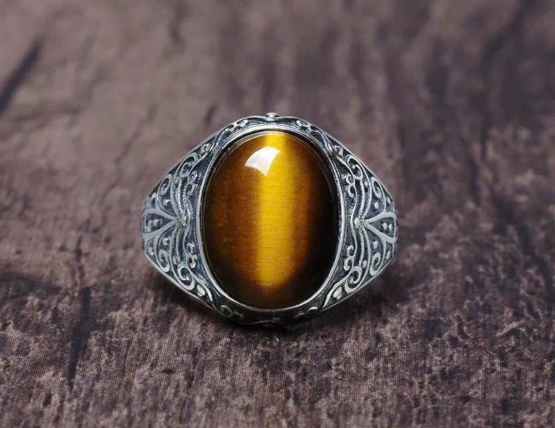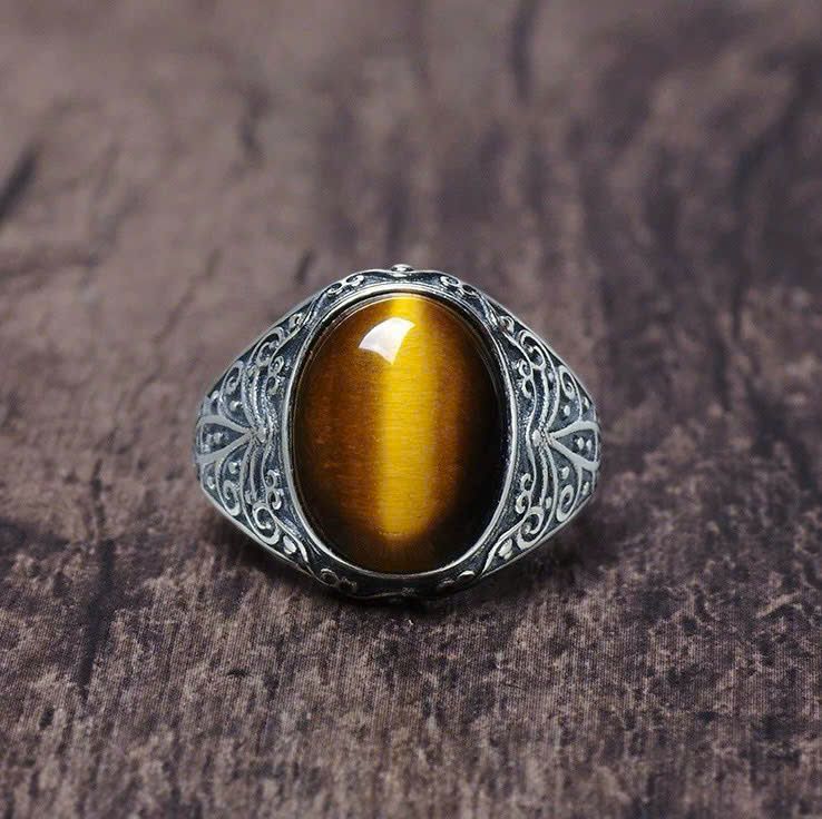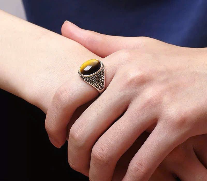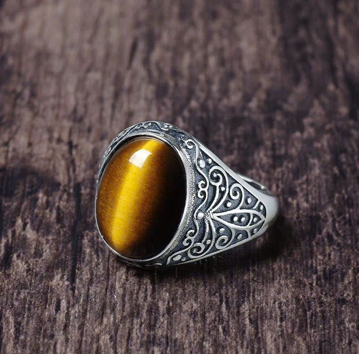 Nhẫn bạc nam cao cấp Chất liệu bạc 925 + đá mắt hổ