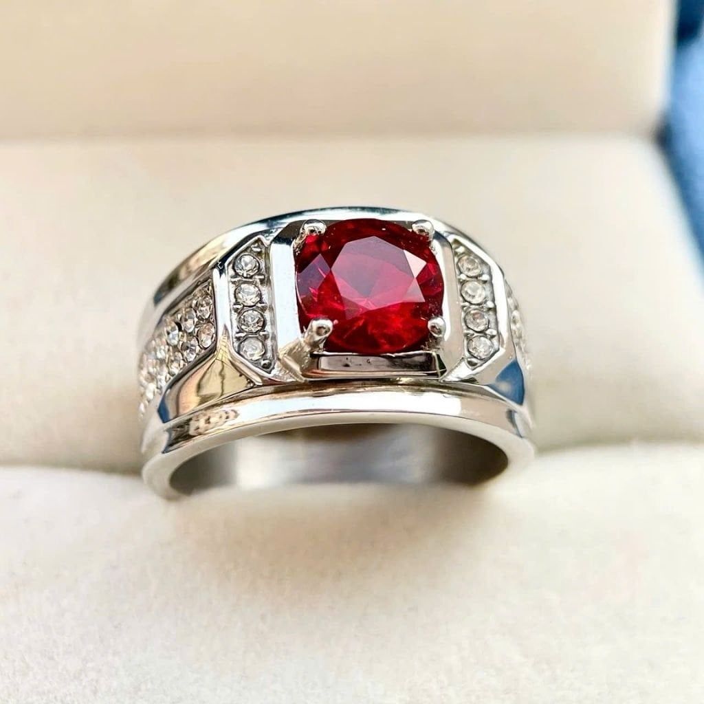 Chiếc nhẫn được chế tác từ thép Titan cao cấp, vừa bền chắc vừa giữ được độ sáng bóng lâu dài. Thiết kế bản to độc đáo, kết hợp viên đá lớn giúp tạo nên vẻ sang trọng, cuốn hút ngay từ ánh nhìn đầu tiên.