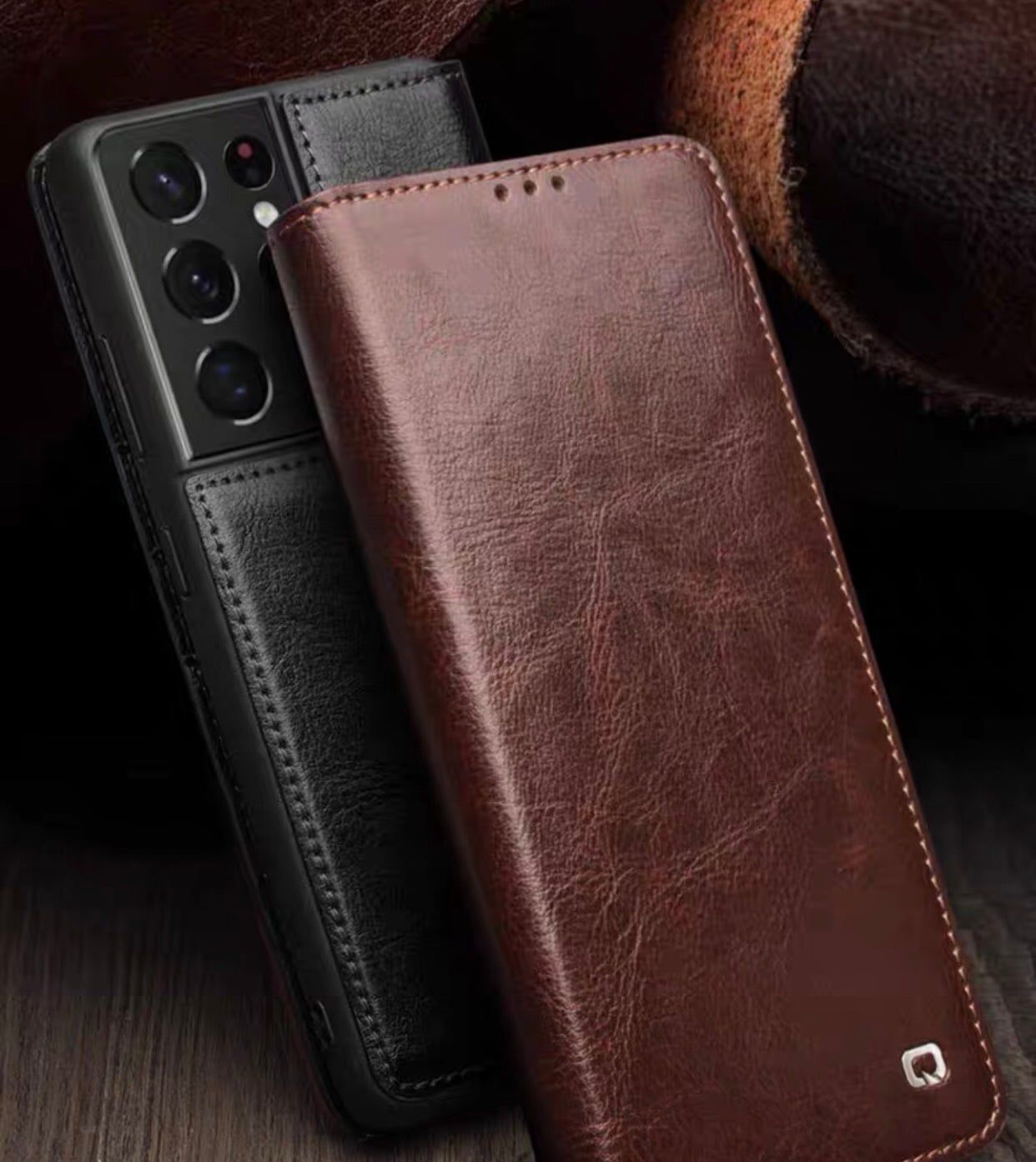 ỐP LƯNG DA ĐIỆN THOẠI PHONG CÁCH DOANH NHÂN Bao da S23 Ultra Qlino