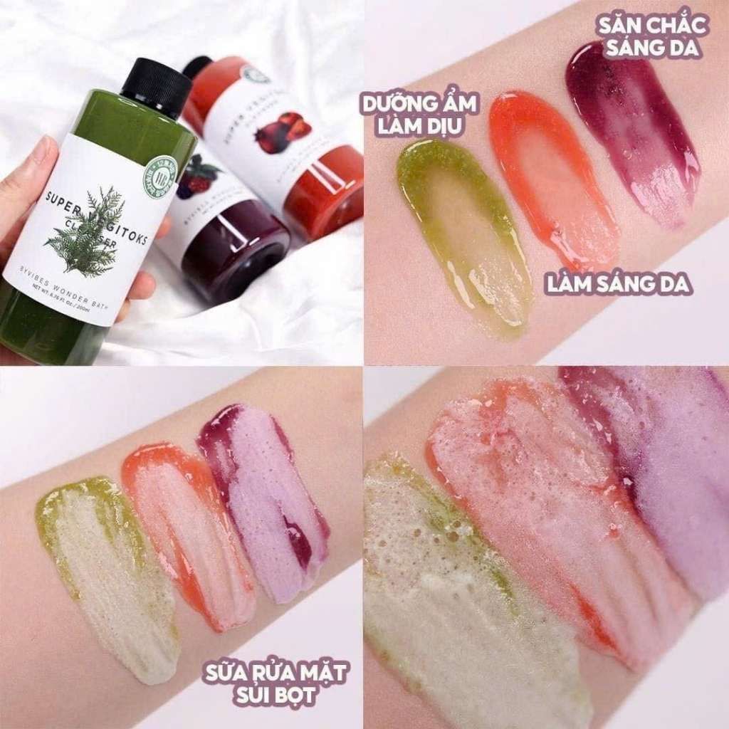 Phân loại màu: 💚 Xanh – chiết xuất chanh, bơ, trà xanh, rau diếp: tăng cường vitamin, cấp ẩm tự nhiên, sáng da, mờ thâm nám. ❤ Đỏ – chiết xuất cà chua, lựu, cà rốt: làm sạch nhẹ nhàng, dưỡng trắng. 💜 Tím – chiết xuất cà tím, blueberry, củ dền: dưỡng ẩm sâu, tăng đàn hồi, da căng mịn.