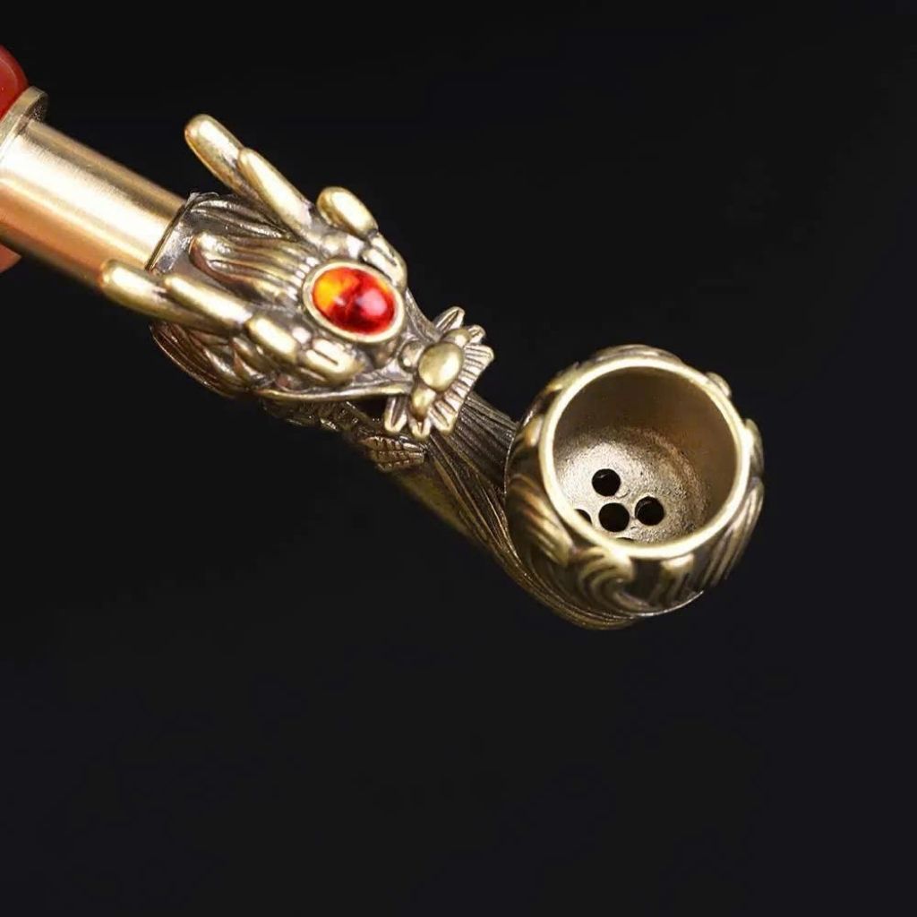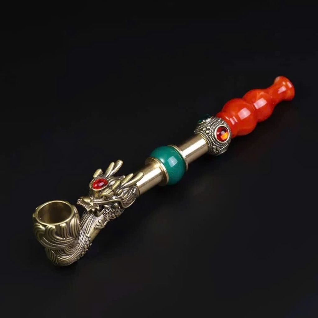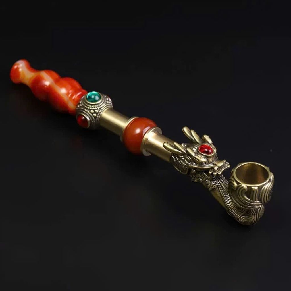 Tẩu Hút Thuốc Đầu Rồng Đồng Cổ Đá Quý – Thủ Công Sang Trọng, Đẳng Cấp Quý Ông