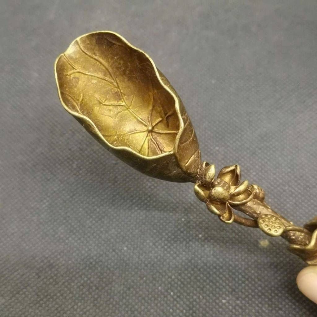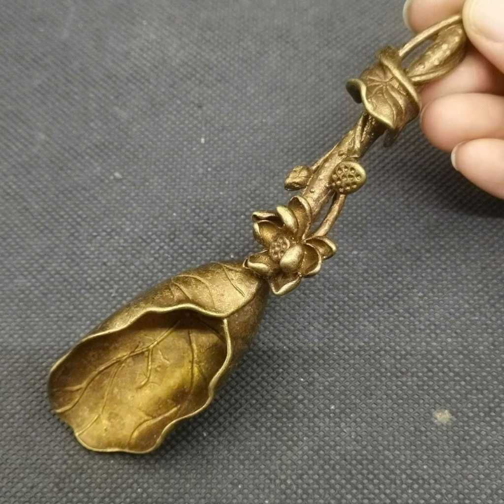 Thìa Xúc Trà Bằng Đồng Hình Lá Sen Thủ Công Cao Cấp – Phụ Kiện Trà Đạo Tinh Tế, Thanh Nhã