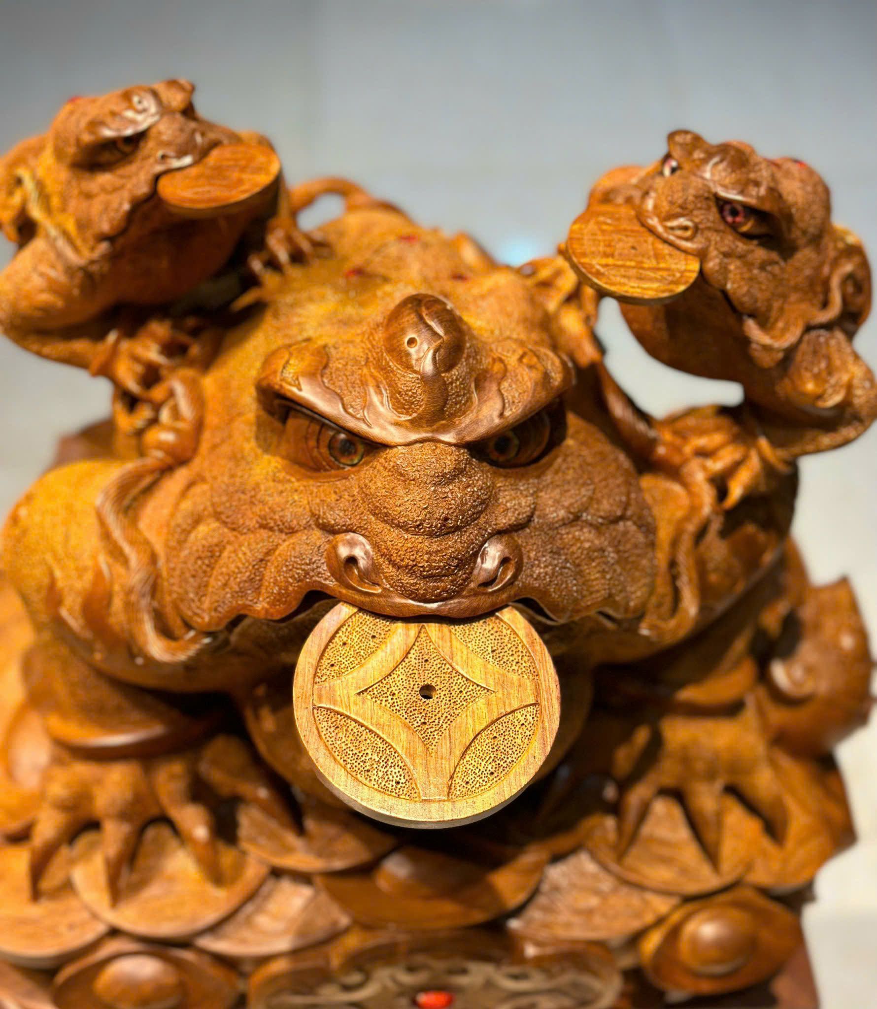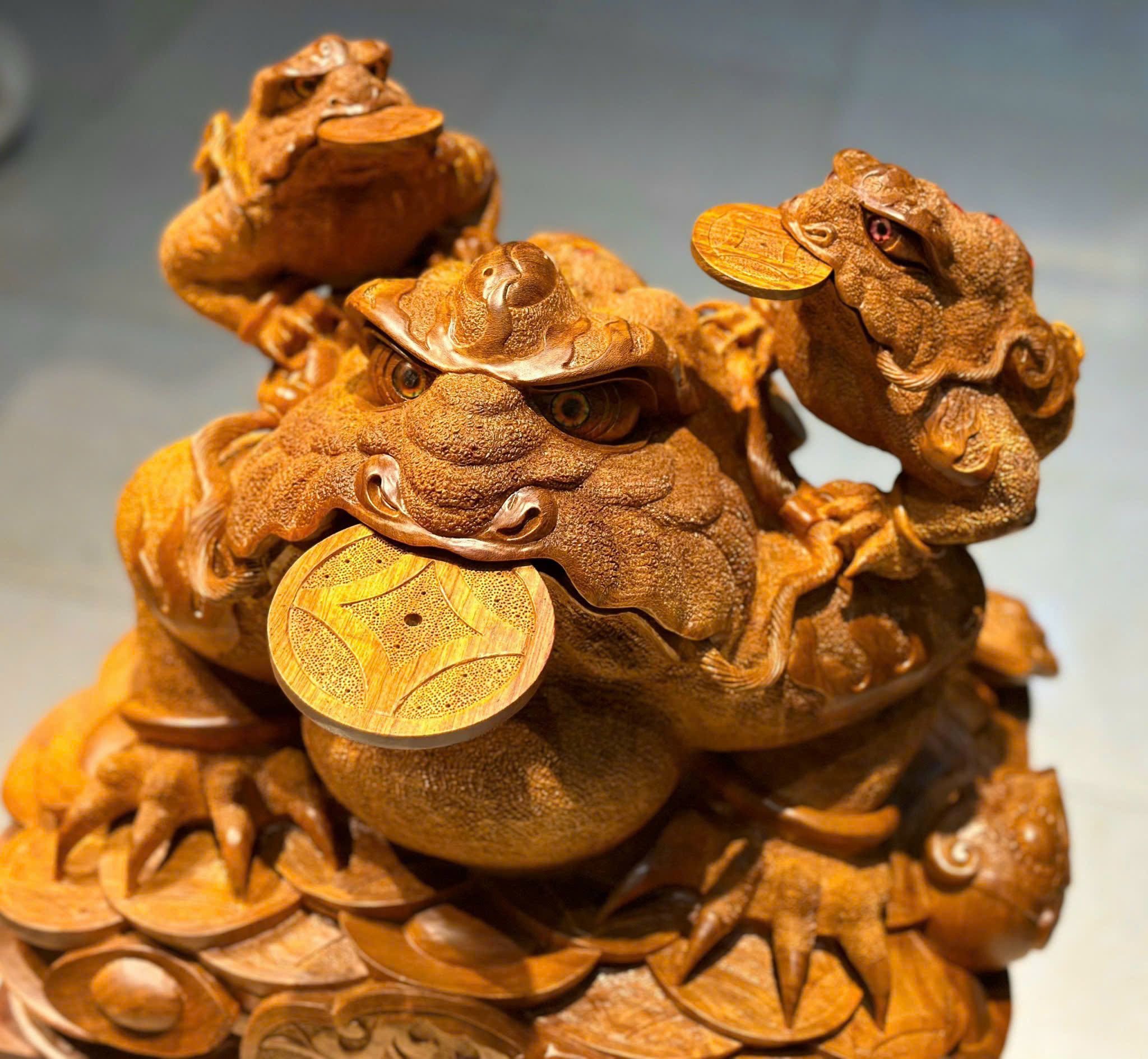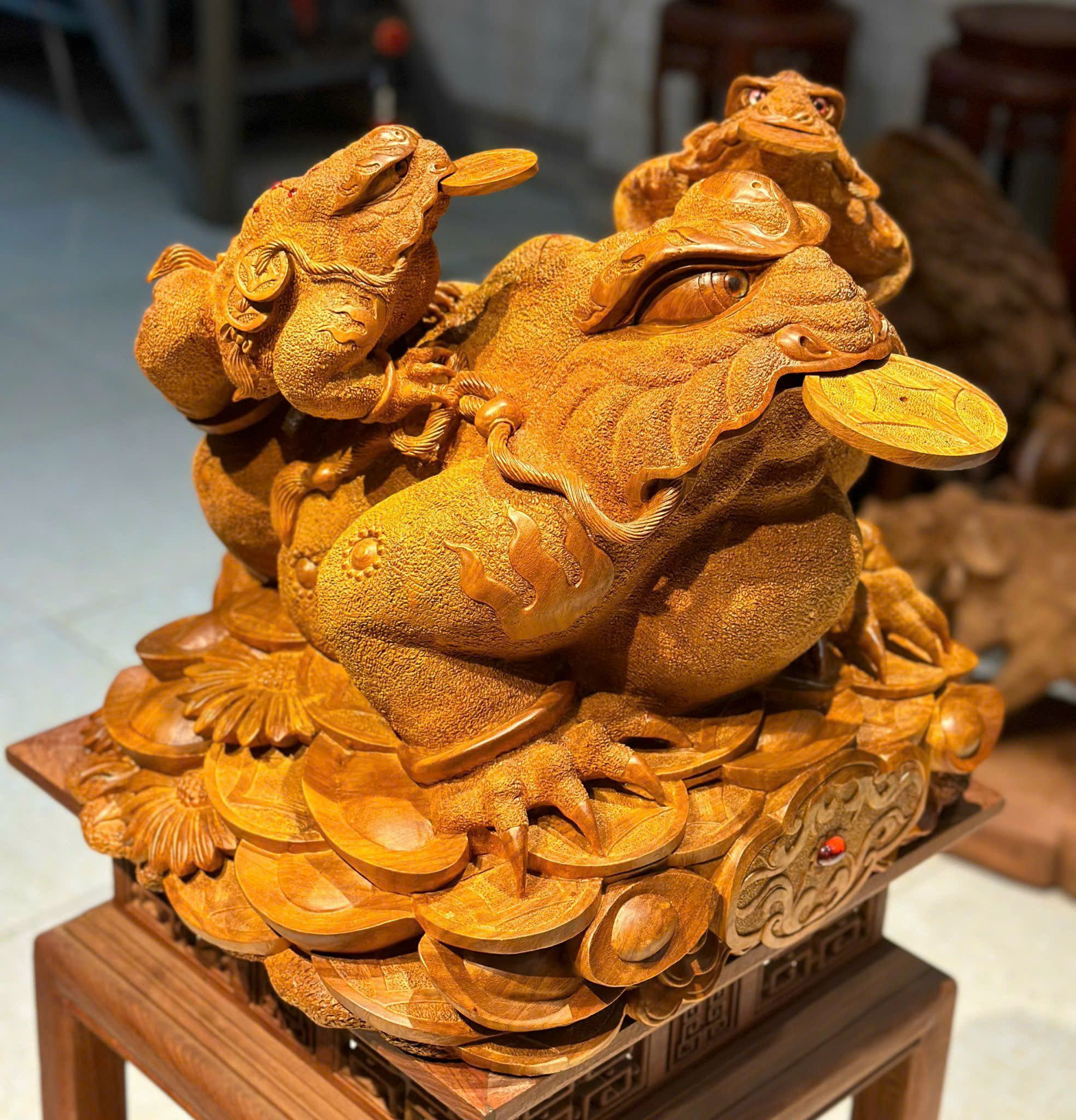 Thiềm thừ mẫu tử đẹp kĩ Gỗ hương ta liền khối hàng siêu phẩm Hàng đục nét tứ diện